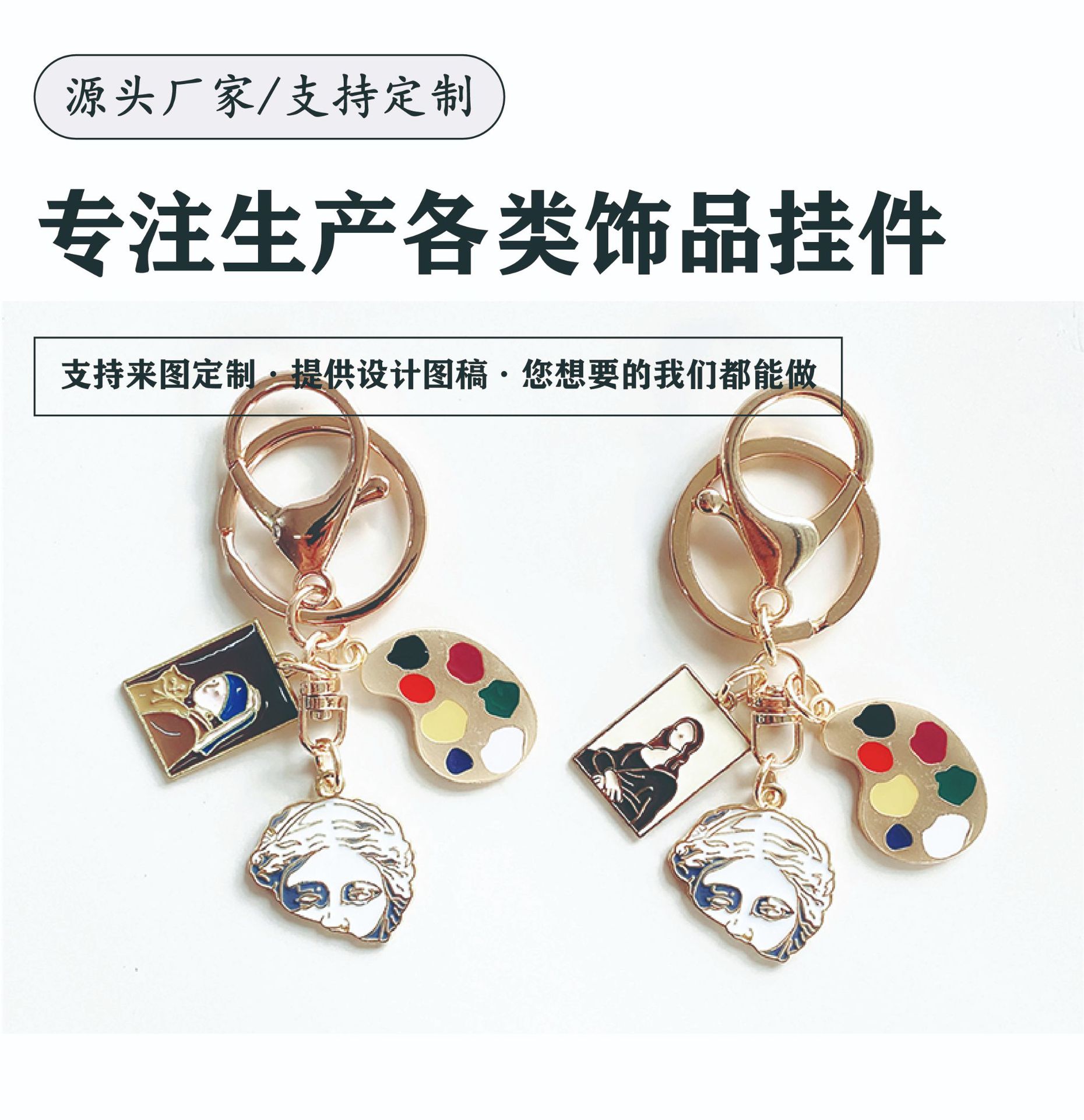 Ins 문학 스타일 성격 모나리자 진주 소녀 초상화 조각 키 체인 아트 학생 가방 펜던트 선물스토어 가기