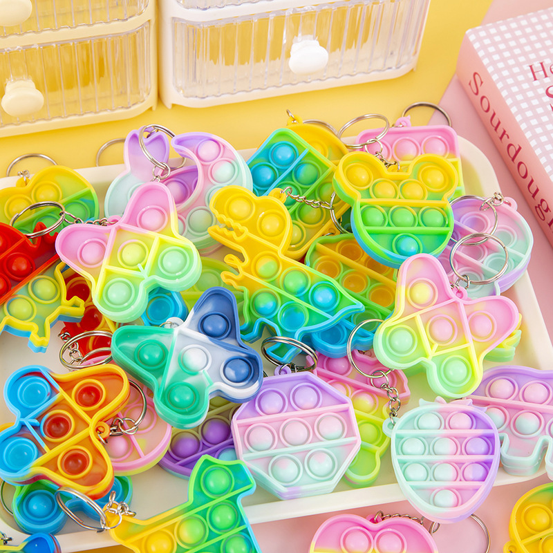 창조적 인 어린이 무지개 감압 키 체인 압축 작은 장난감 손가락 거품 책 가방 펜던트 작은 선물 도매스토어 가기
