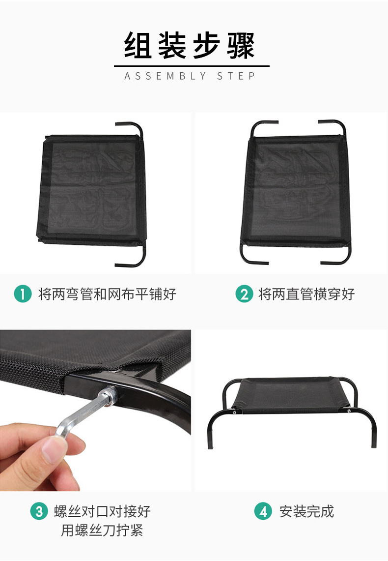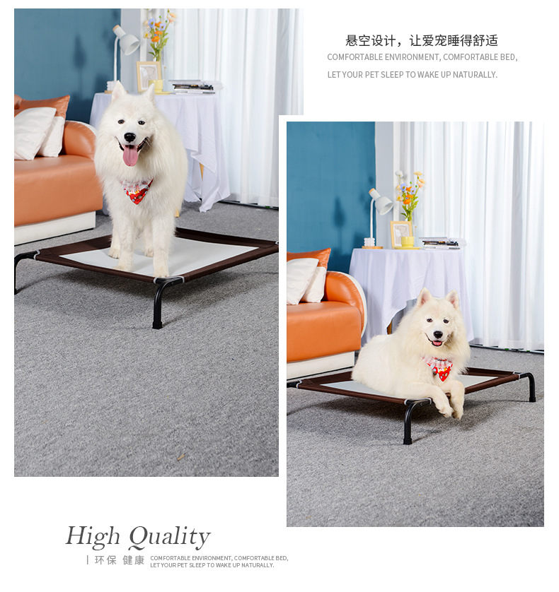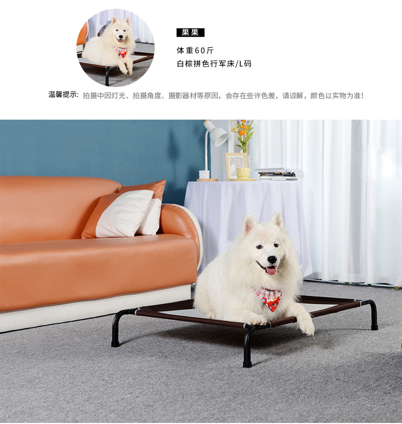 강아지 캠프베드, 강아지 침대, 높이 조절 가능한 강아지 매트, 중대형견용, 방습 통기성, 금속 지지대, 내하중 침대, 명절 선물