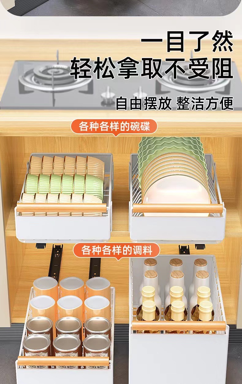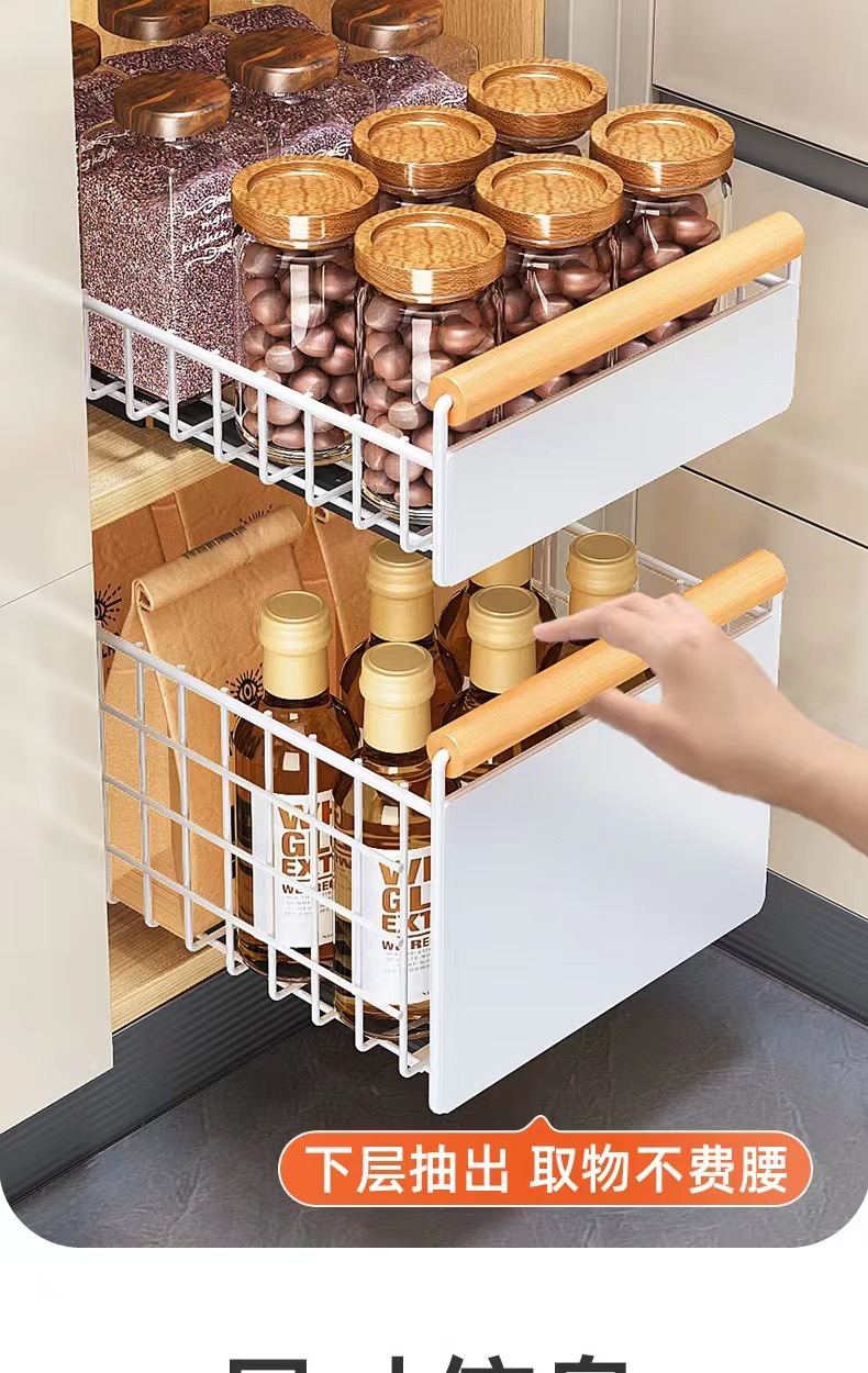 풀 아웃 타입 접시 랙 캐비닛 스토리지 랙 슬라이드 레일 접이식 스토리지 랙이있는 다기능 스토리지 랙 조미료 랙