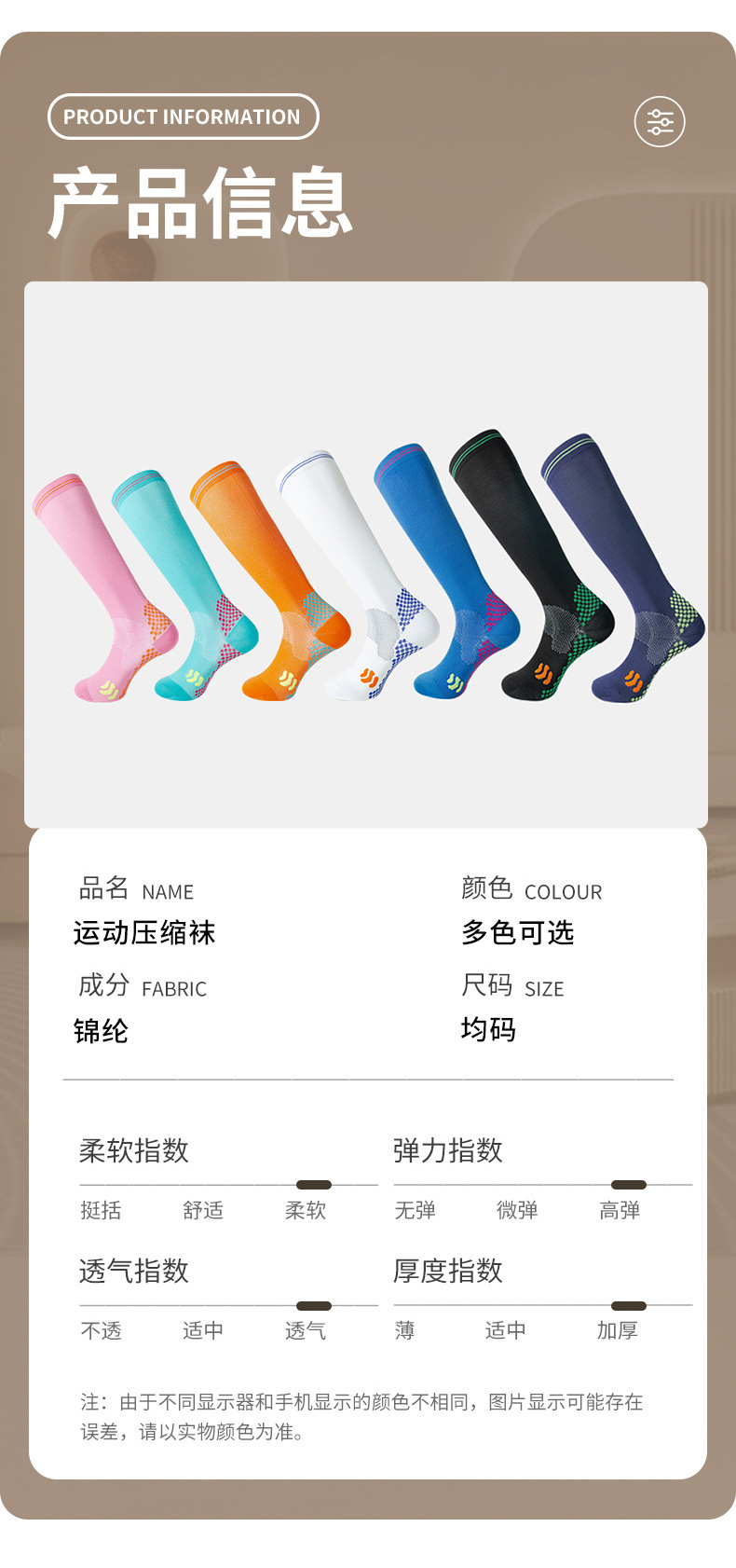 스포츠 압축 양말 나일론 안티 필링 양말 전문 달리기 피트니스 높은 탄성 긴 튜브 다리 양말스토어 가기