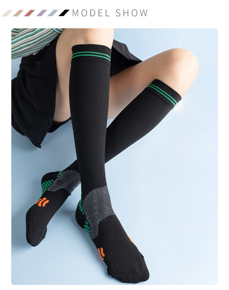 스포츠 압축 양말 나일론 안티 필링 양말 전문 달리기 피트니스 높은 탄성 긴 튜브 다리 양말