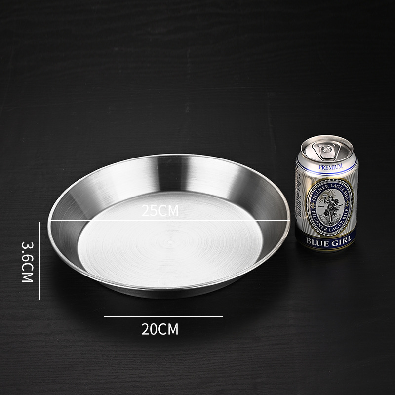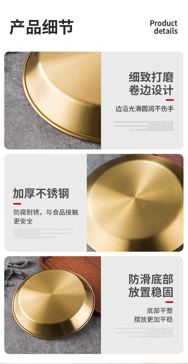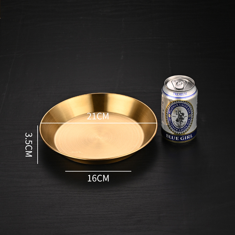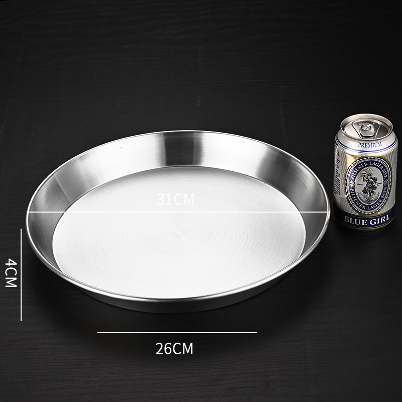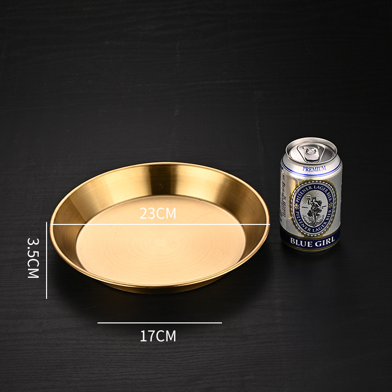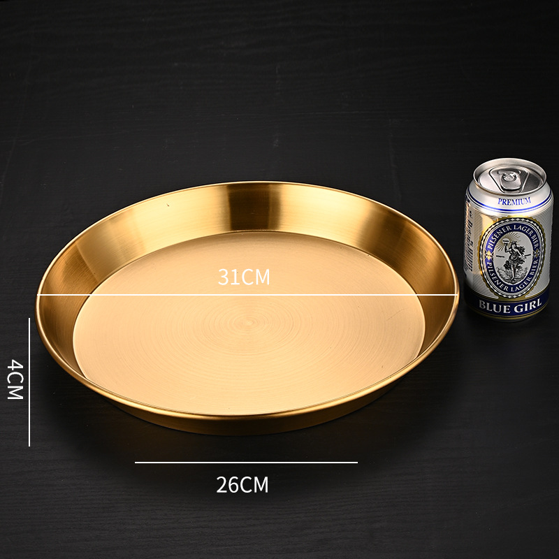 304 한국식 스테인레스 스틸 해산물 플레이트 베이킹 팬 골든 플랫 하단 트레이 피자 플레이트 디스크 딥 접시 케이크 플레이트