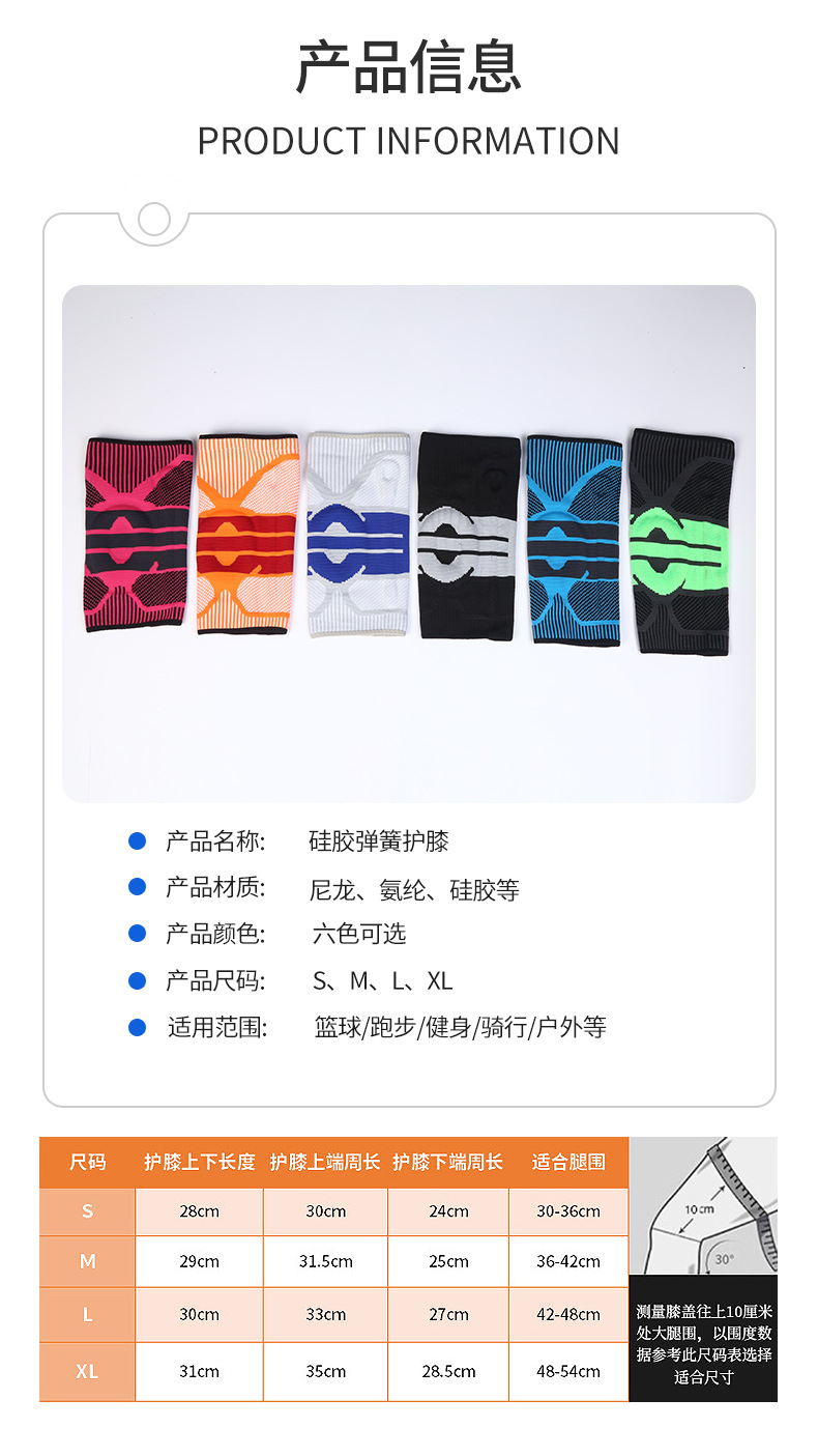 스포츠 무릎 보호대 실리콘 스프링 압박 농구 무릎 보호대 러닝 등산 충격 흡수 스포츠 보호구 니트 미끄럼 방지 무릎 보호대