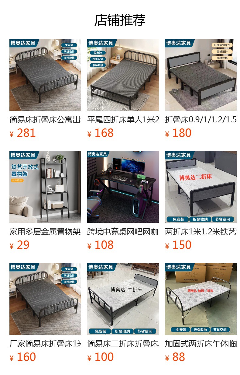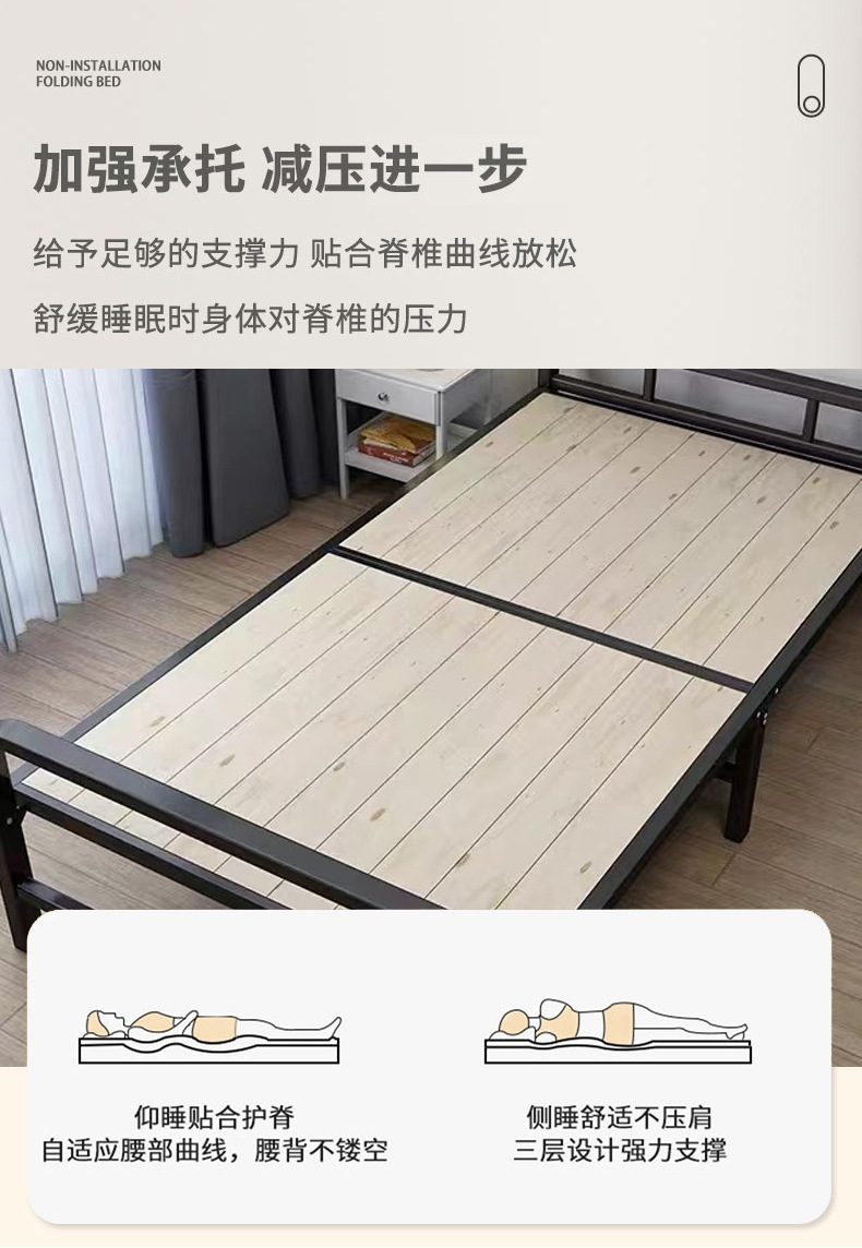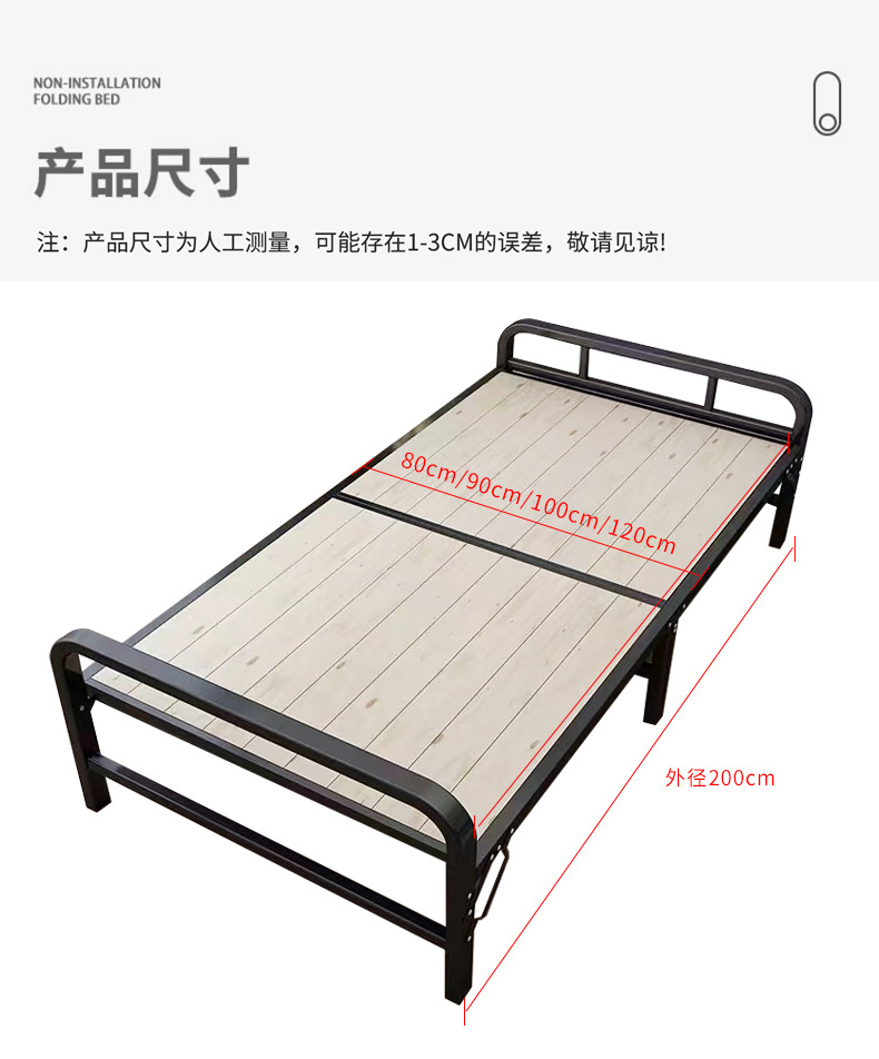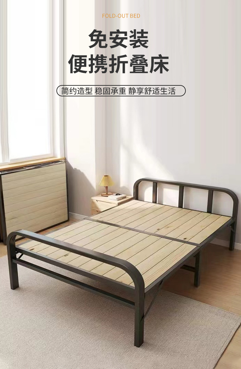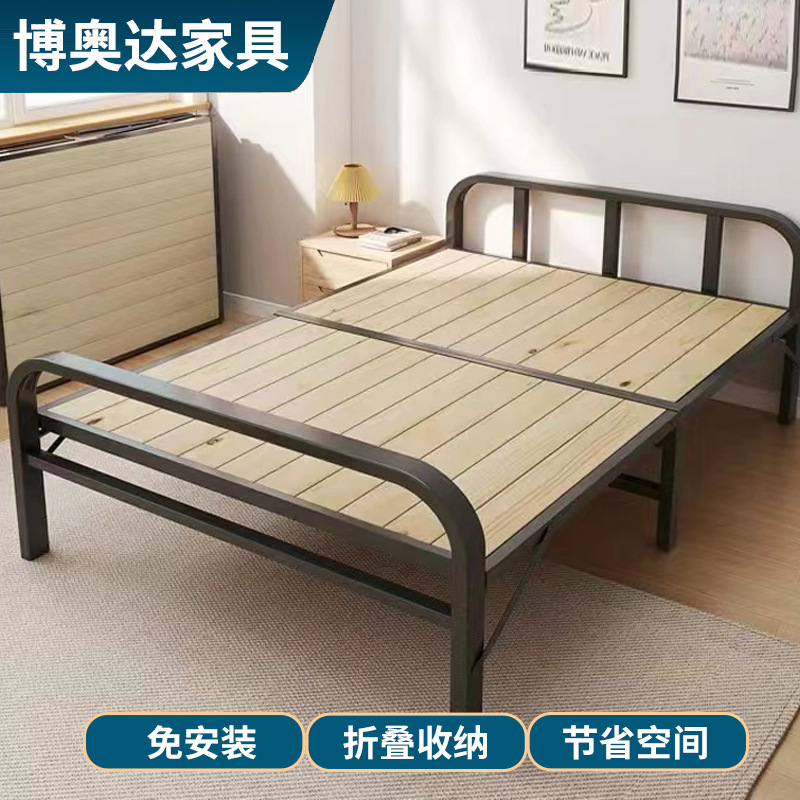 접이식 침대 싱글 가정용 간단한 침대 1 m 2 아파트 임대 나무 침대 80-120cm 철제 싱글 침대스토어 가기