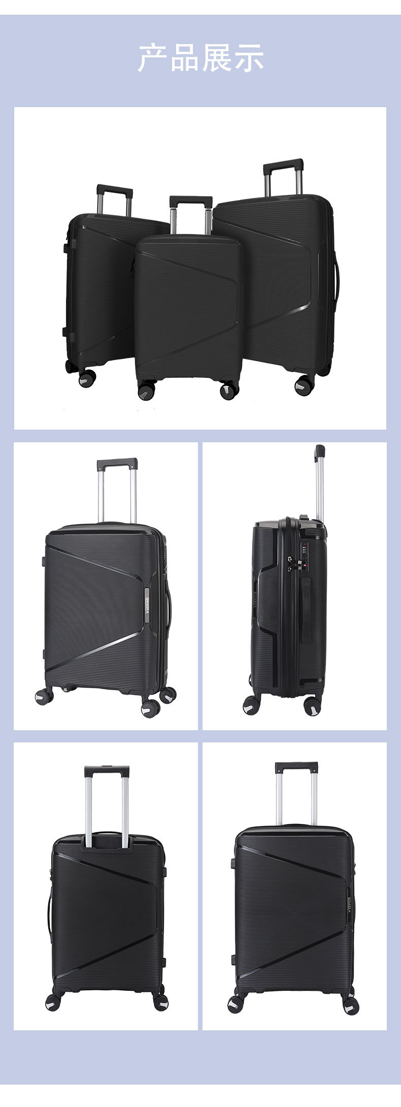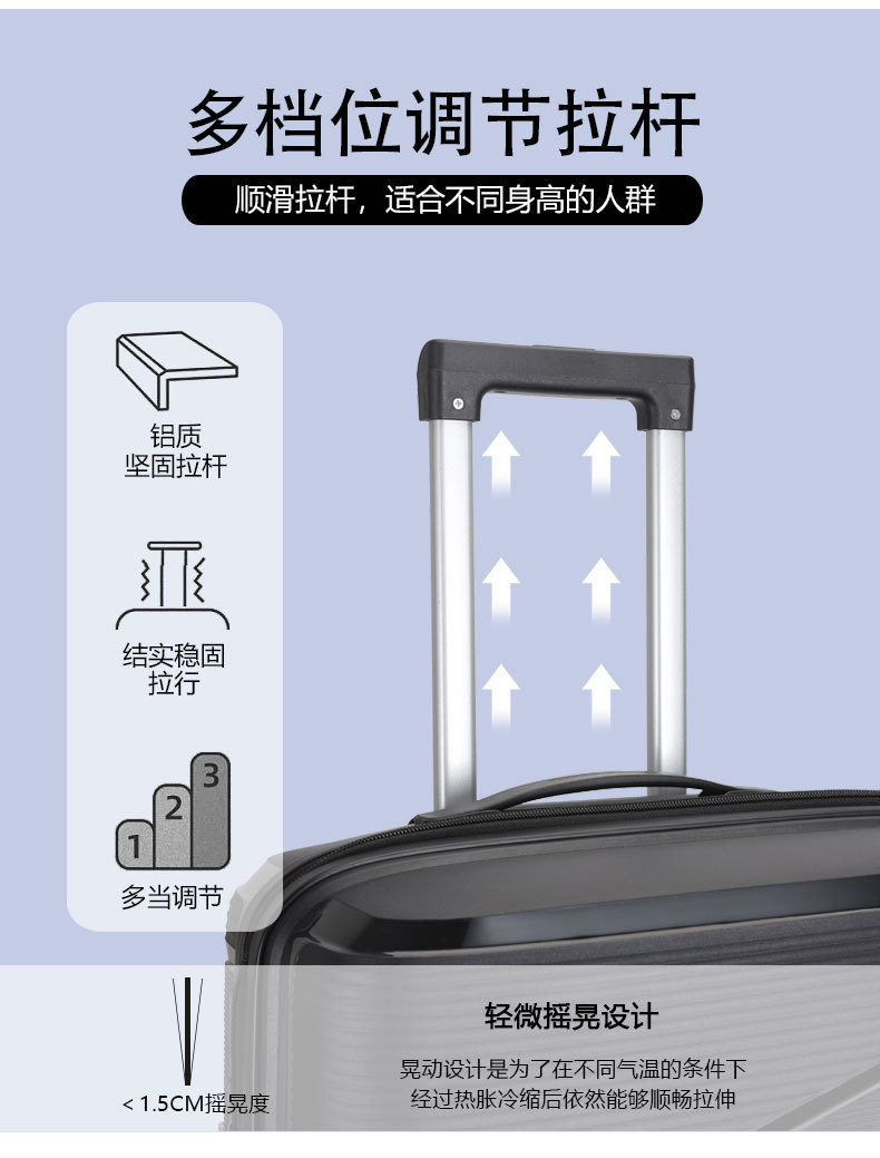 국경 간 새로운 경량 수하물 pp 3 피스 유니버설 휠 가방 레저 여행 대용량 트롤리 케이스