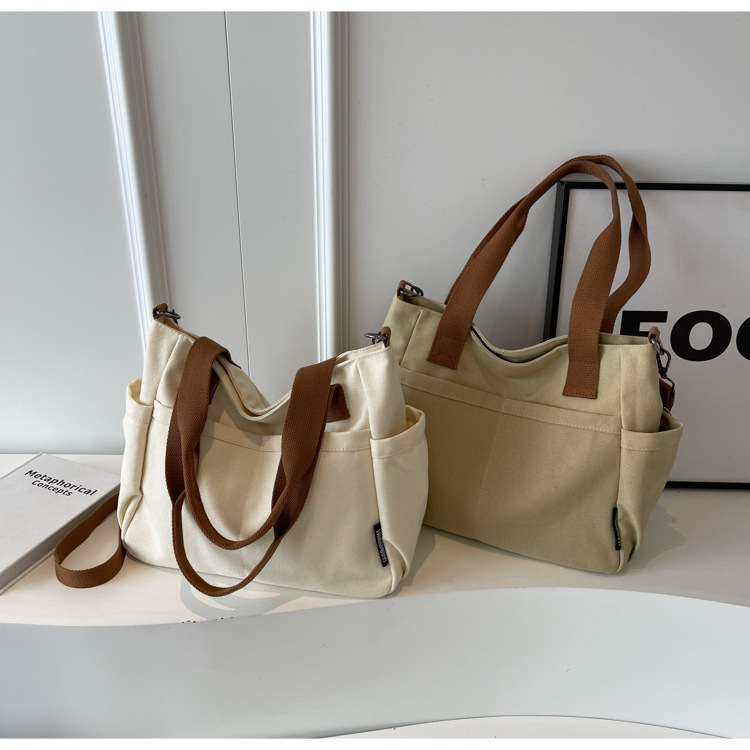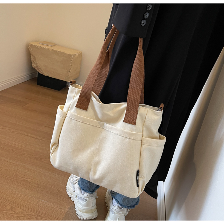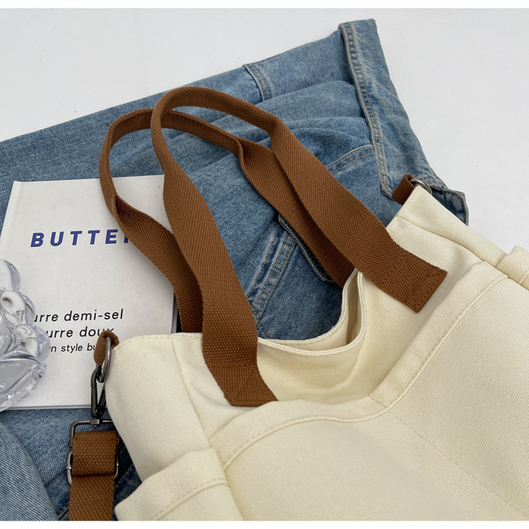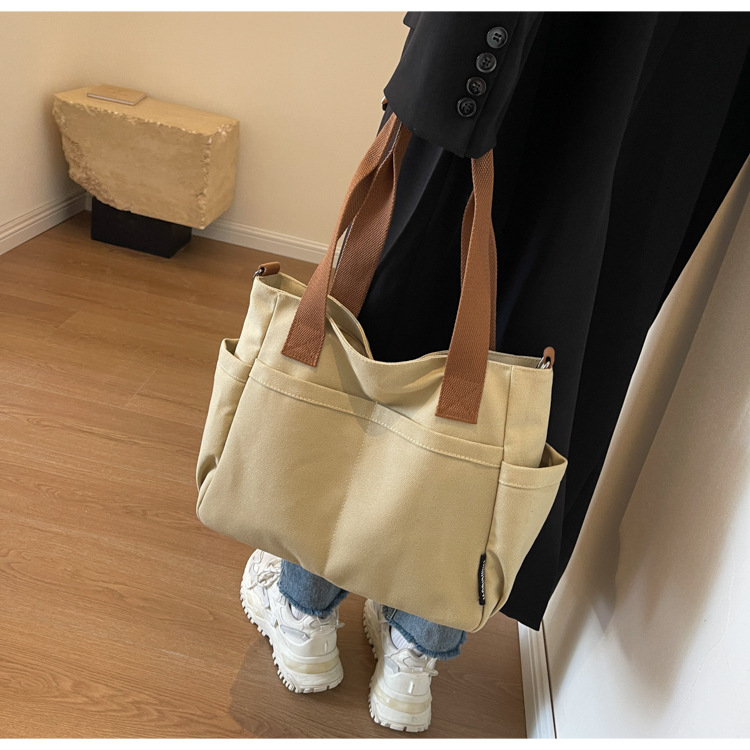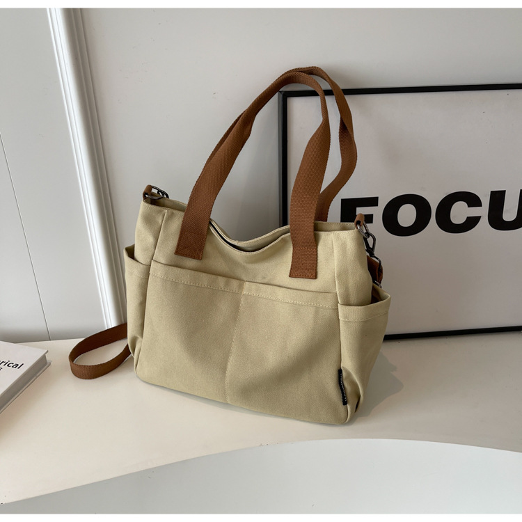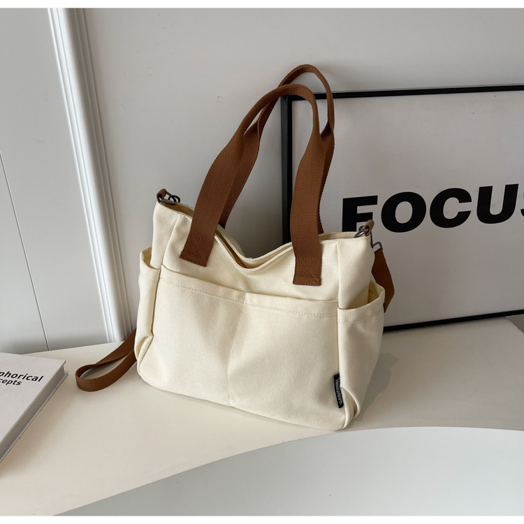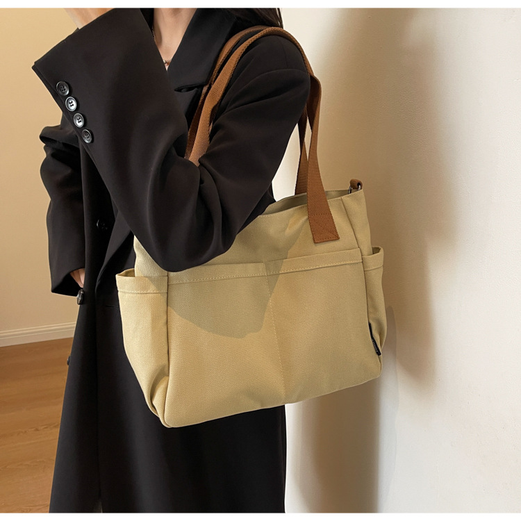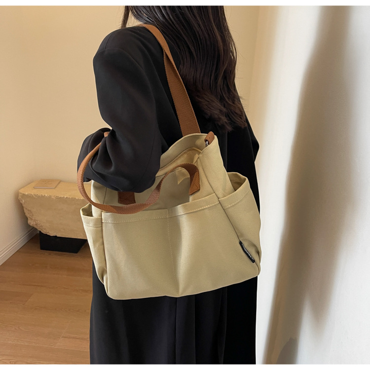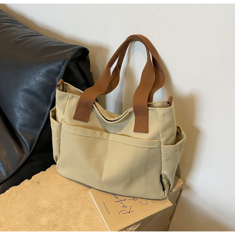 일본식 두꺼운 멀티 포켓 통근 토트 캔버스 가방 캐주얼 학생 컴퓨터 간단한 휴대용 어깨 크로스 바디 스쿨백