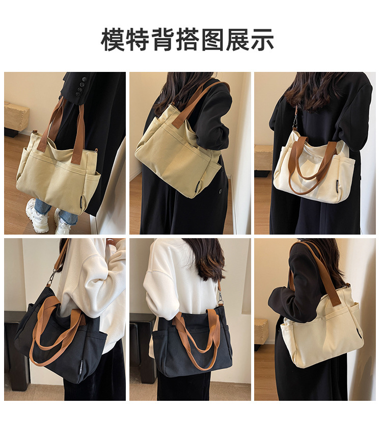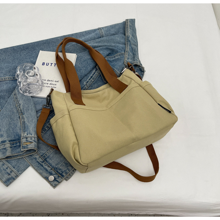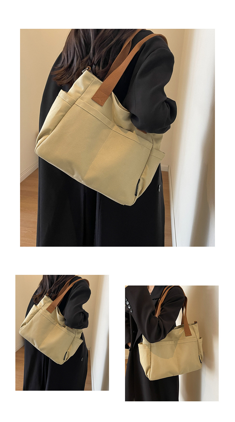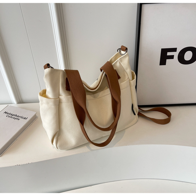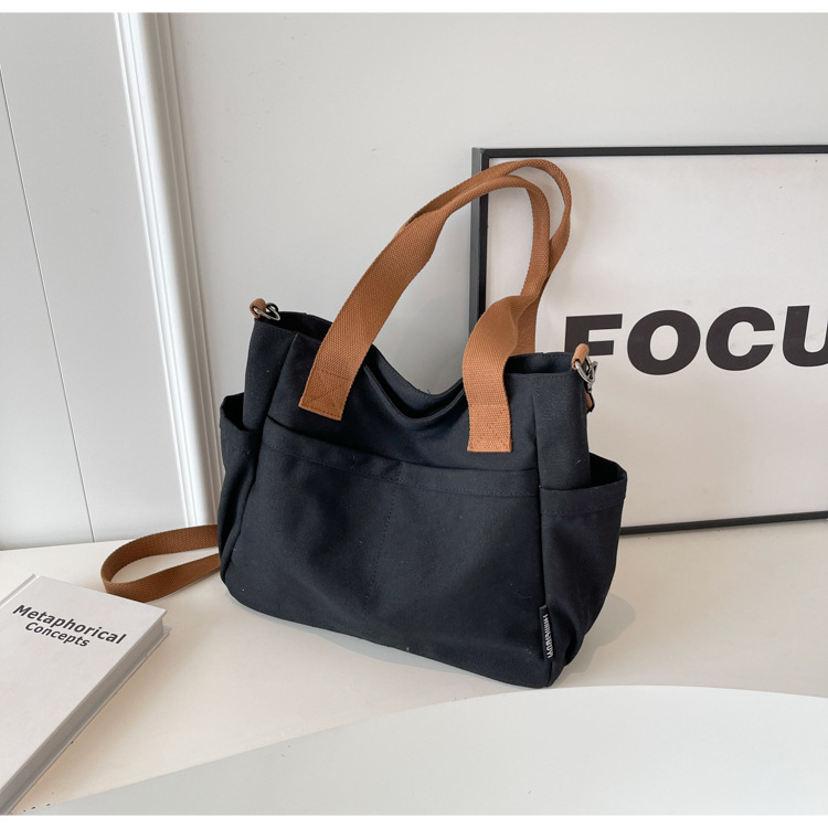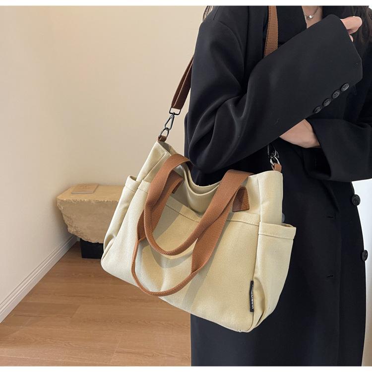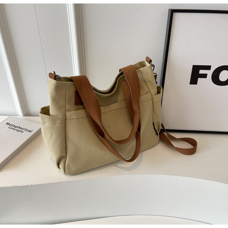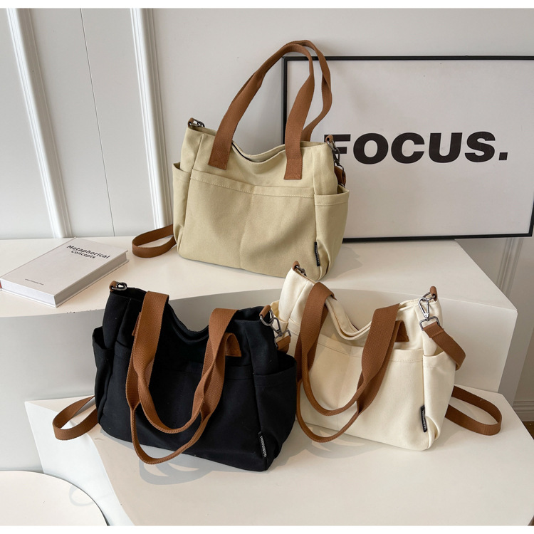 일본식 두꺼운 멀티 포켓 통근 토트 캔버스 가방 캐주얼 학생 컴퓨터 간단한 휴대용 어깨 크로스 바디 스쿨백
