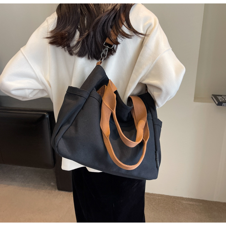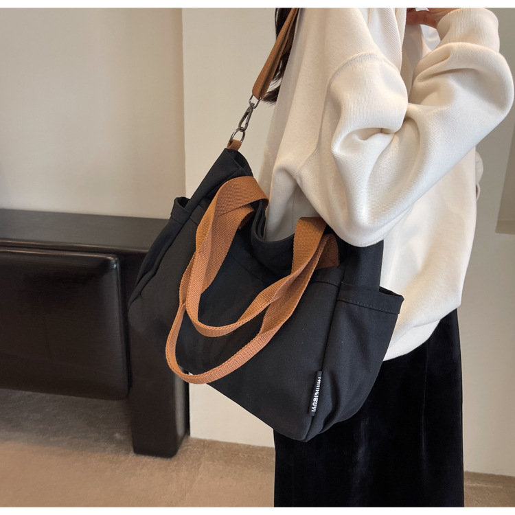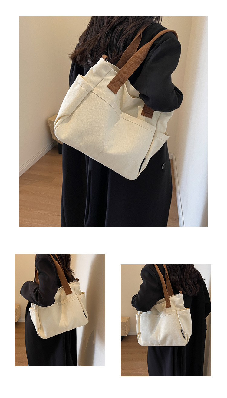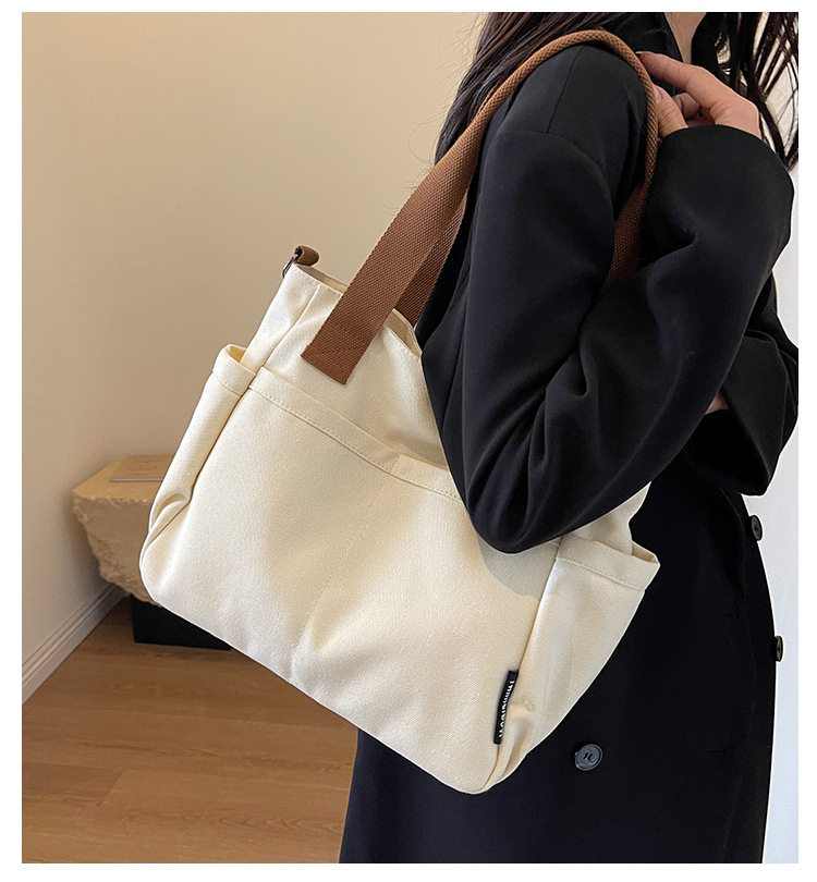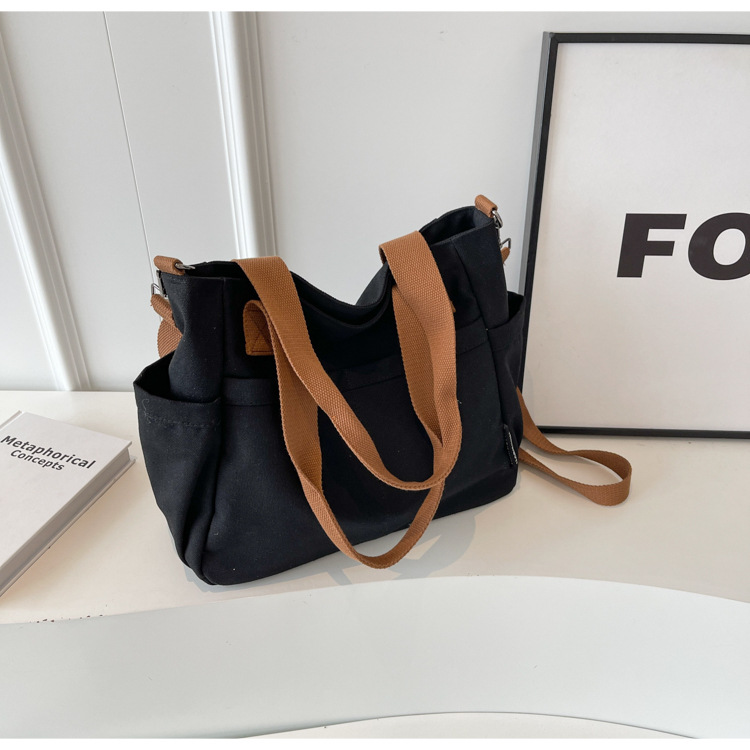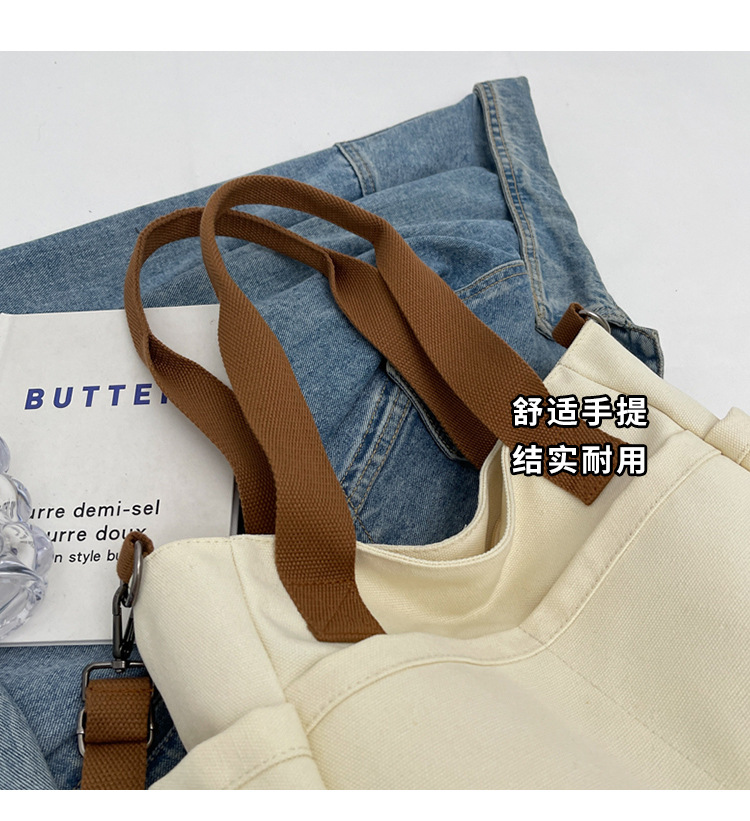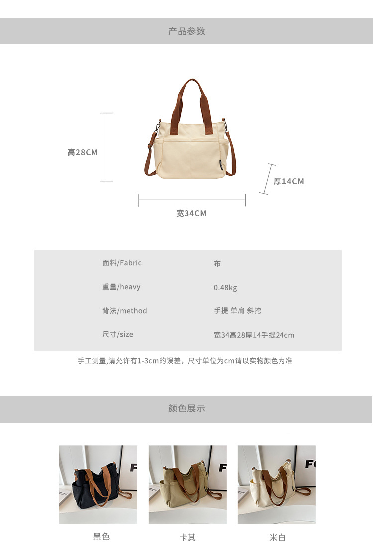 일본식 두꺼운 멀티 포켓 통근 토트 캔버스 가방 캐주얼 학생 컴퓨터 간단한 휴대용 어깨 크로스 바디 스쿨백