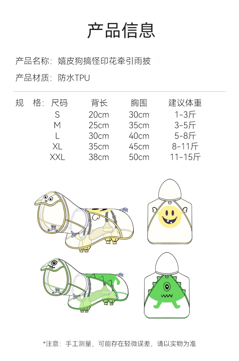 두 다리 케이프 재미 인쇄 견인 개 옷 중소 규모 개 비오는 날 방수 판초 애완 동물 비옷스토어 가기