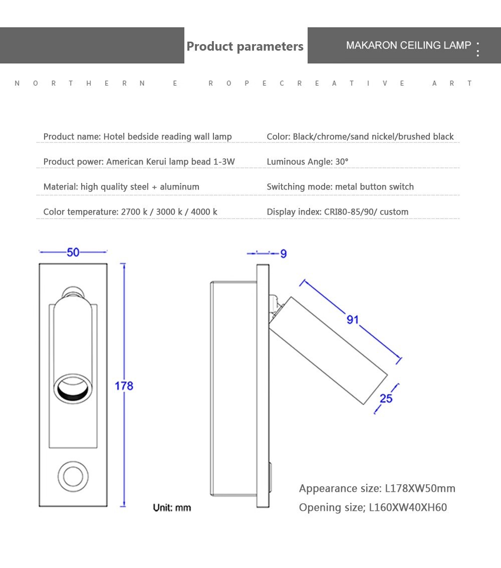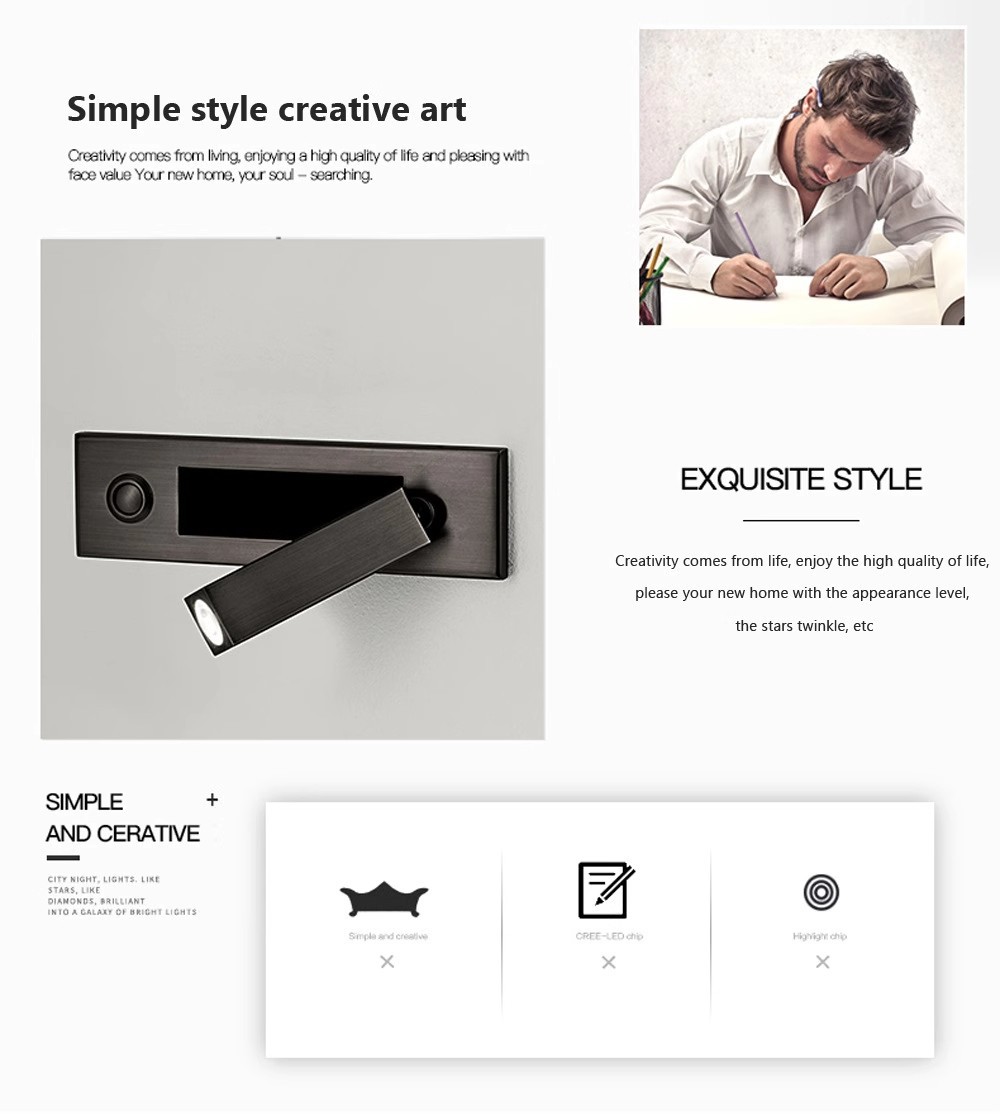 호텔 임베디드 사이드 벽 램프 빌라 클럽 현대 간단한 침실 연구 마스터 침실 회전 독서 램프