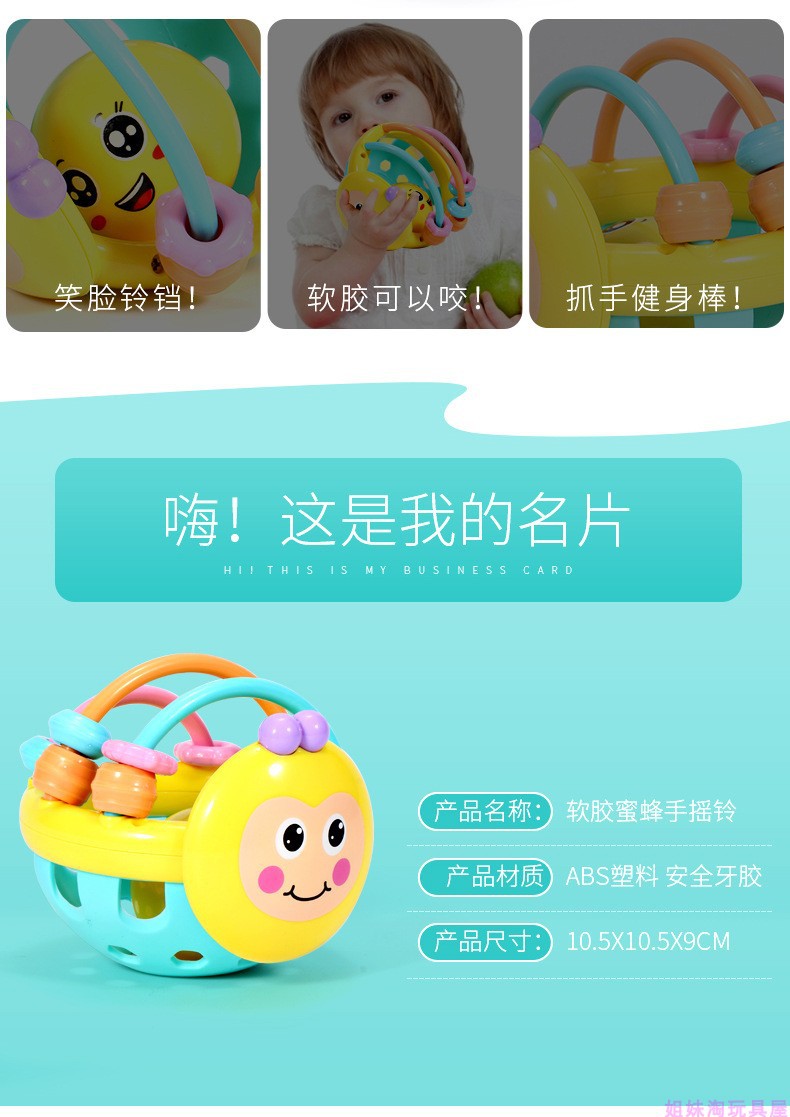 • 꿀벌 딸랑이 공 + 해바라기 부드러운 고무 딸랑이 (머스타드 그린) [가방]