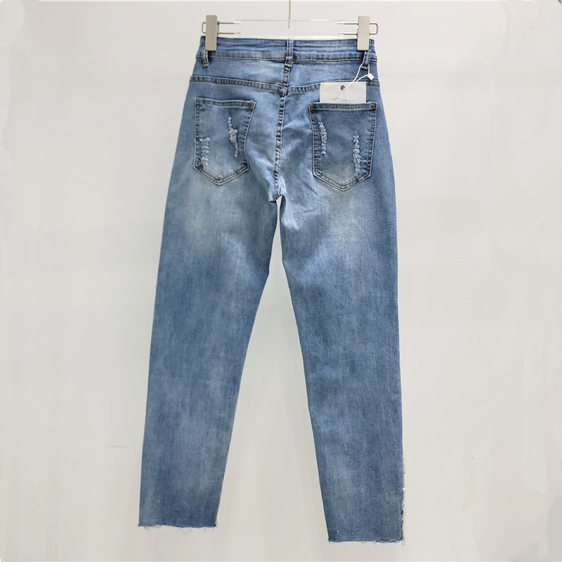 무거운 의무 비즈 하이 웨이스트 청바지 여성의 2024 년 새로운 도착 다리 Sequin Lace 할로우 아웃 플라워 스트레치 스키니 팬츠