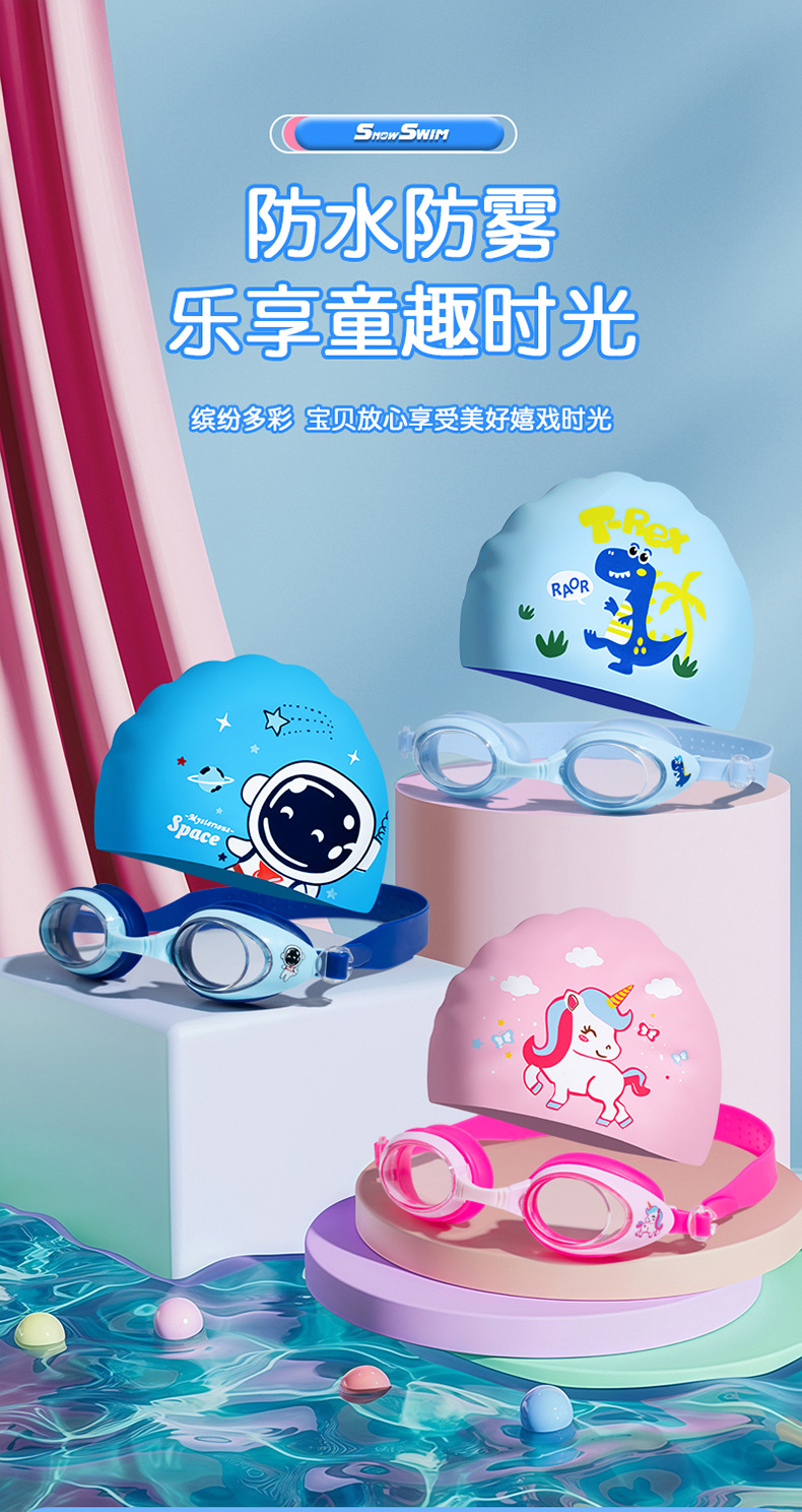어린이 실리콘 만화 수영 모자 소년과 소녀 긴 머리 방수 귀 보호 머리 귀여운 수영 모자 수영 장비스토어 가기