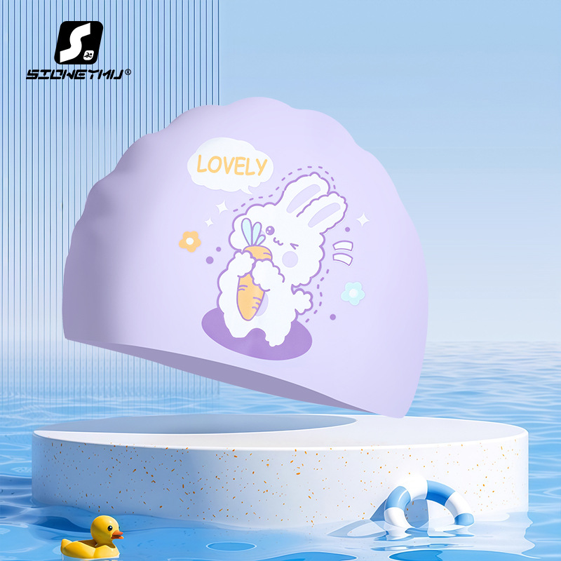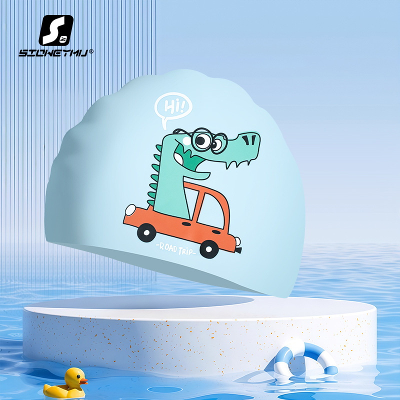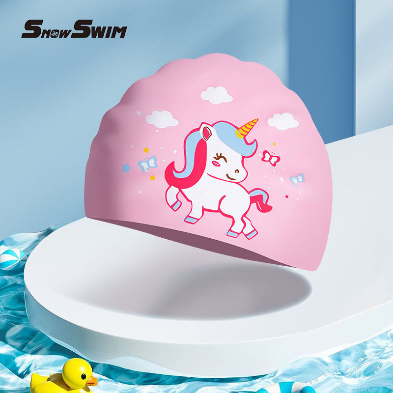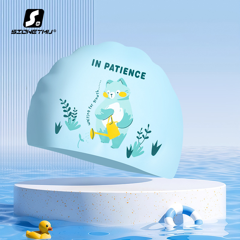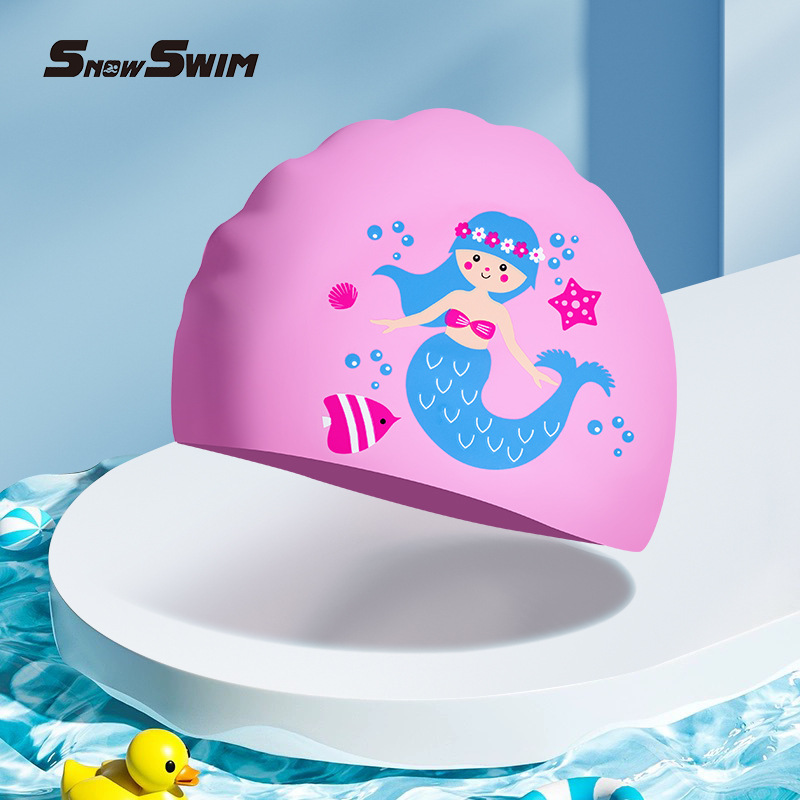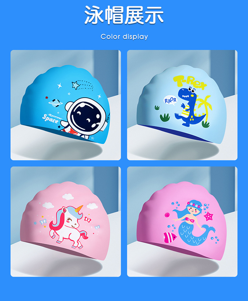 어린이 실리콘 만화 수영 모자 소년과 소녀 긴 머리 방수 귀 보호 머리 귀여운 수영 모자 수영 장비