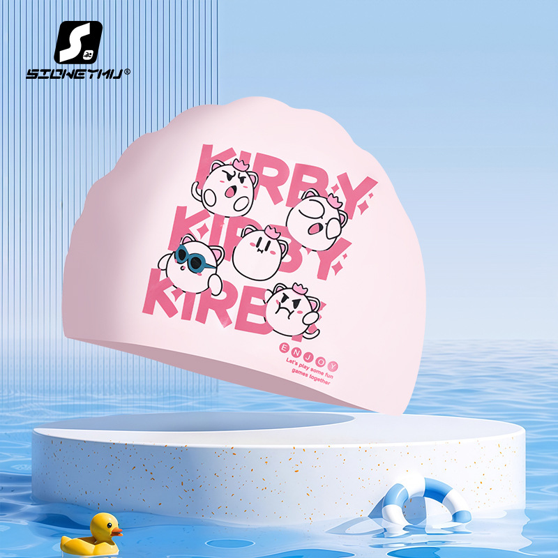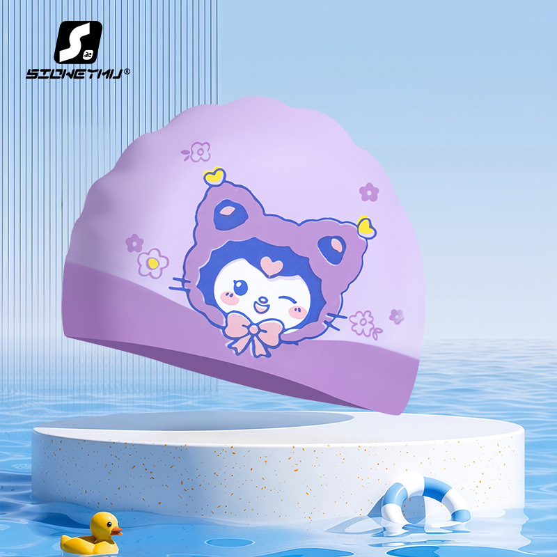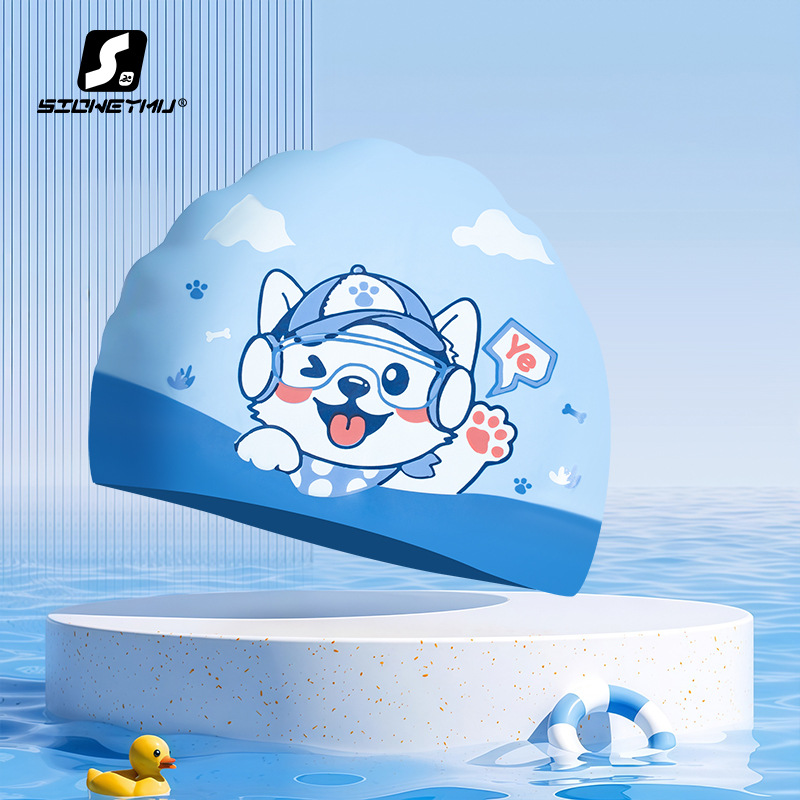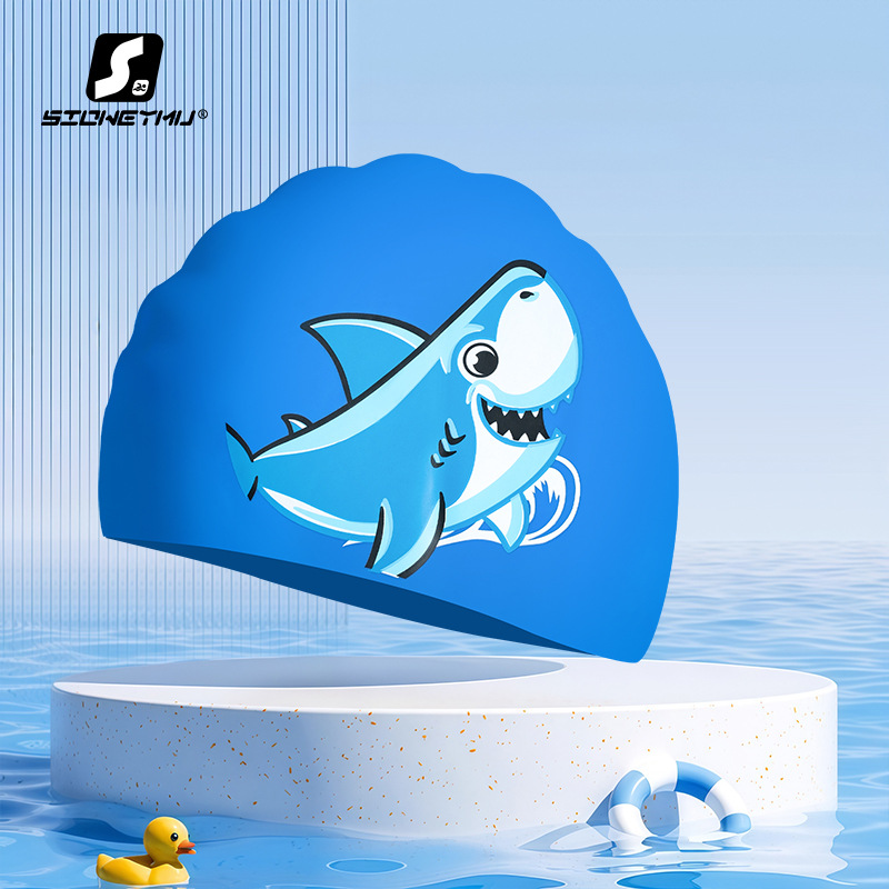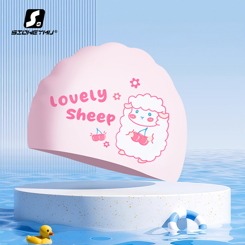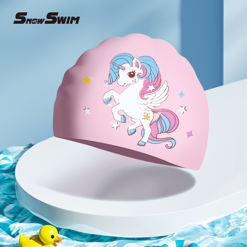 어린이 실리콘 만화 수영 모자 소년과 소녀 긴 머리 방수 귀 보호 머리 귀여운 수영 모자 수영 장비