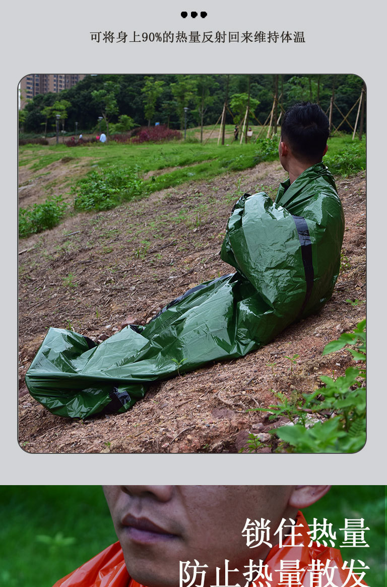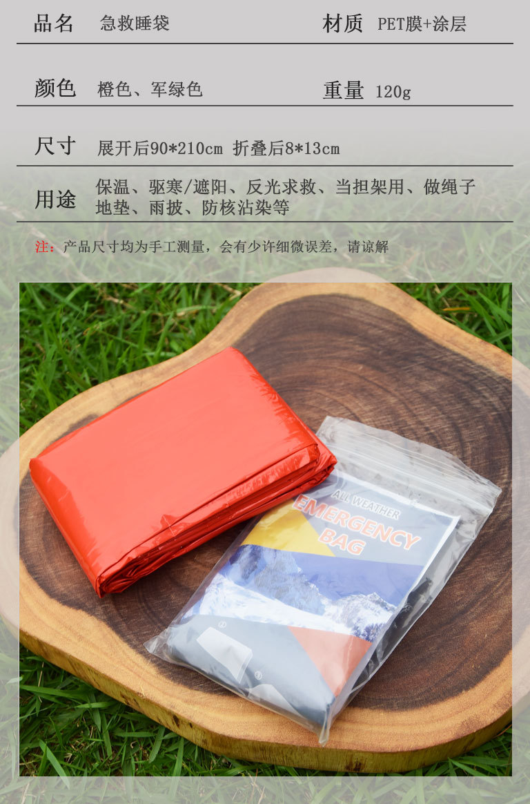 야외 캠핑 PE 알루미늄 필름 오렌지 응급 처치 침낭 간단한 방냉 재해 구호 비상 따뜻한 침낭 방수 방습스토어 가기