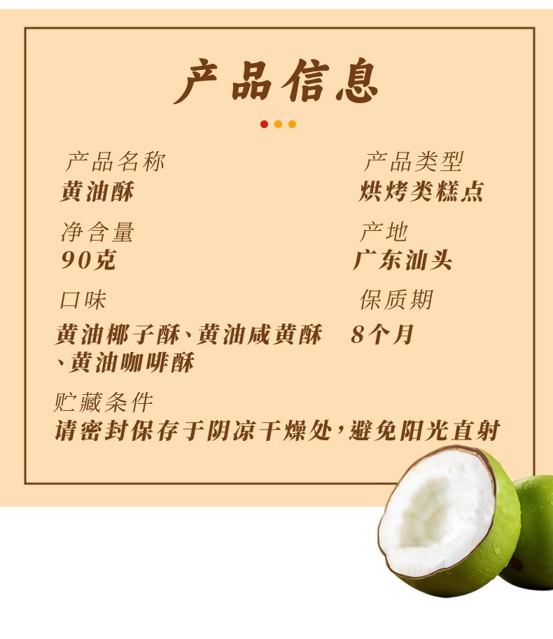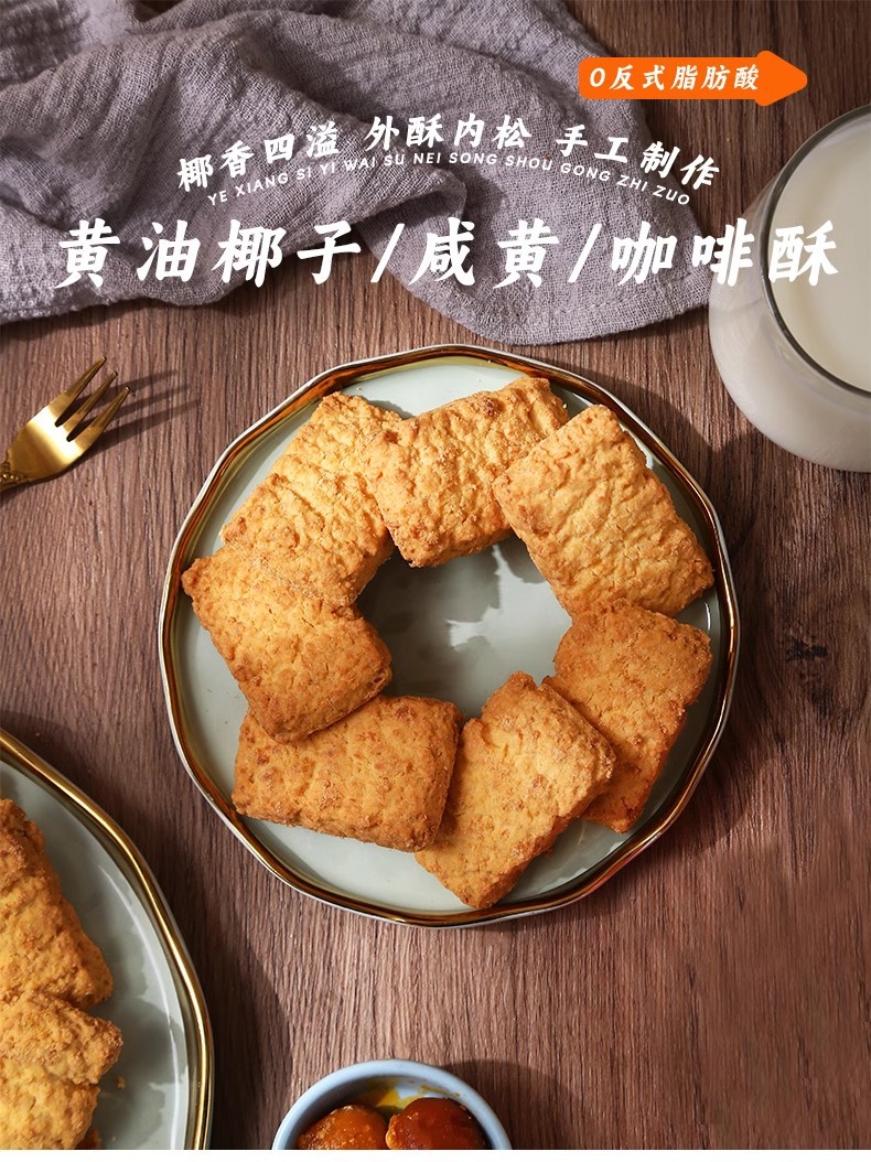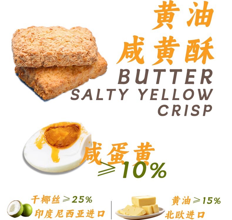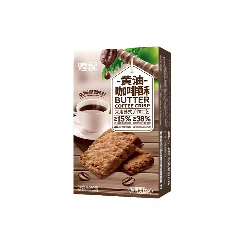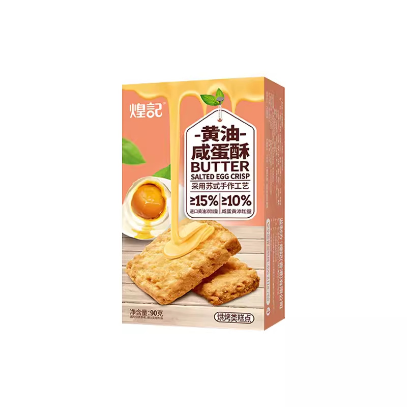 Huang Ji의 새로운 버터 크리스프 90g 박스 신선한 향기로운 소금에 절인 달걀 코코넛 수 스타일 패스트리 패밀리 모임 레저 스낵