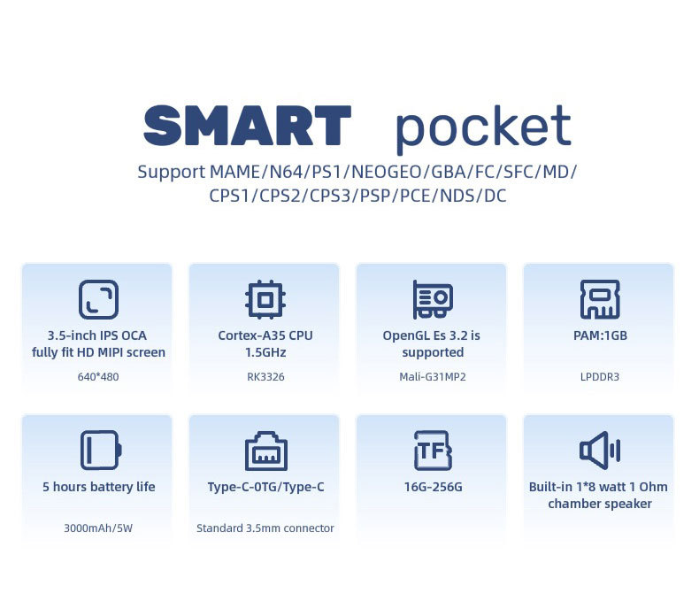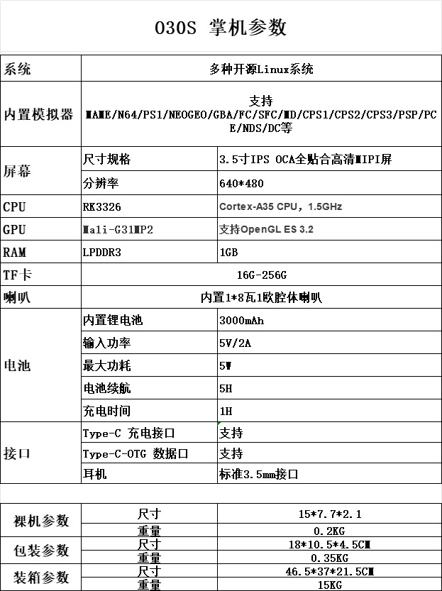 국경 간 새로운 O30S 리눅스 시스템 휴대용 레트로 GBA 게임 향수 PS1 오픈 소스 핸드 헬드 게임 기계