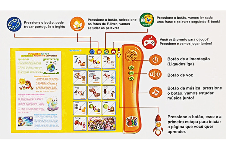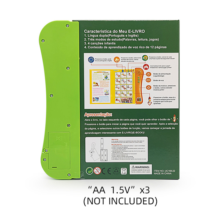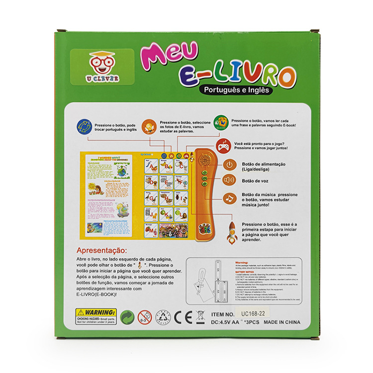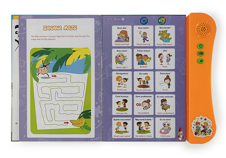 국경 간 포르투갈어 영어 포인트 읽기 어린이 교육 장난감 오디오 터치 북 포르투갈어 전자 책스토어 가기