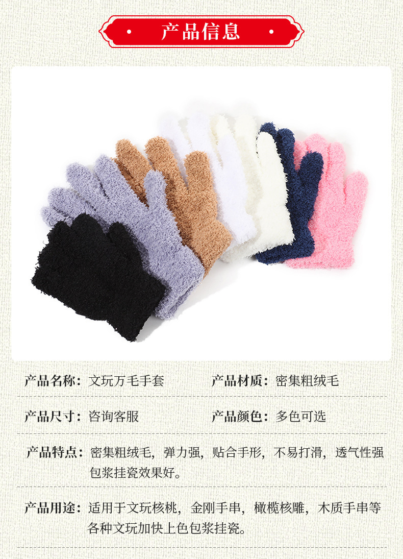 재고 웬완 양모 장갑 플레이트 호두 유물 양모 장갑 마모 방지 광택 바닥 페이스트 매달려 도자기 장갑 도매