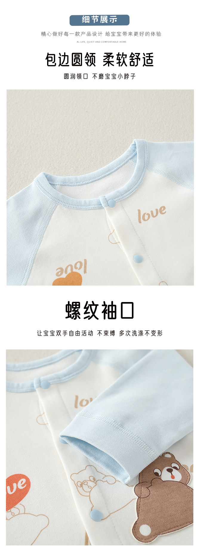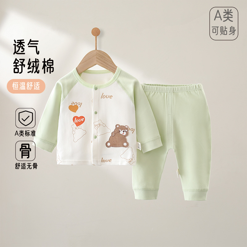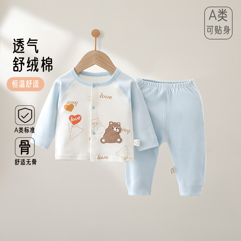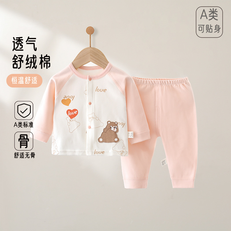 신생아 퓨어 코튼 본리스 4 시즌 홈 의류 유아용 의류 스플릿 투피스 세트 소년 소녀 아기 아동복