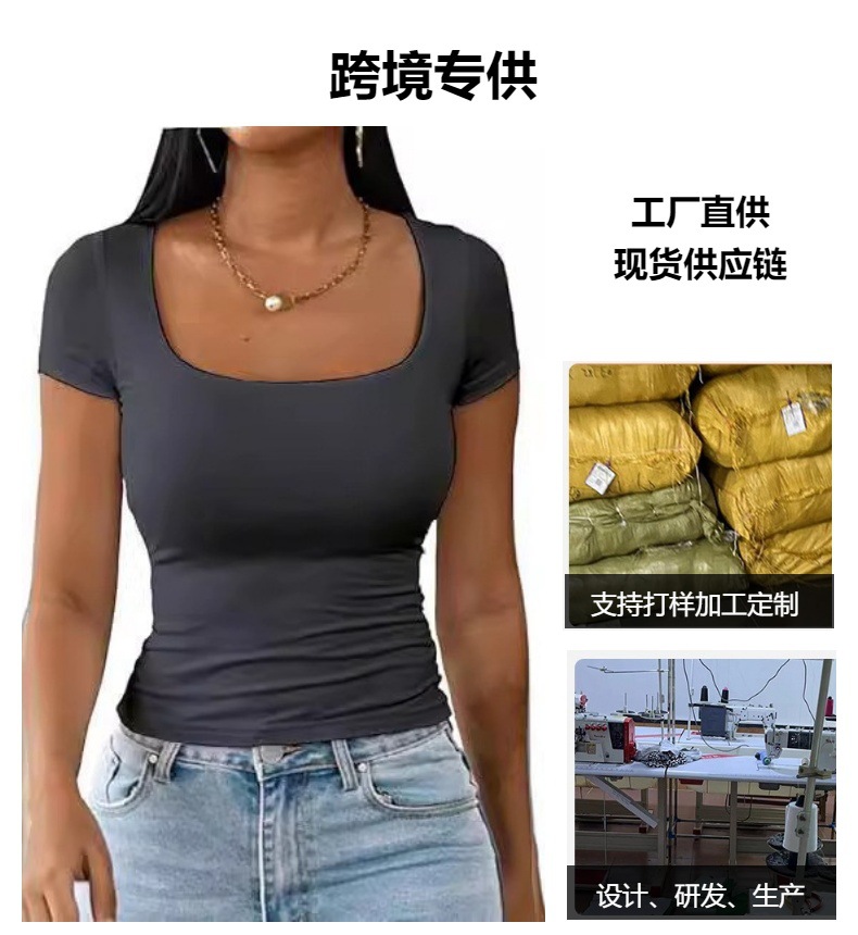 2026년 여름 여성용 U넥 티셔츠, 심플하고 캐주얼하며 다용도로 활용 가능한 패셔너블한 슬림핏 여성용 반팔 티셔츠