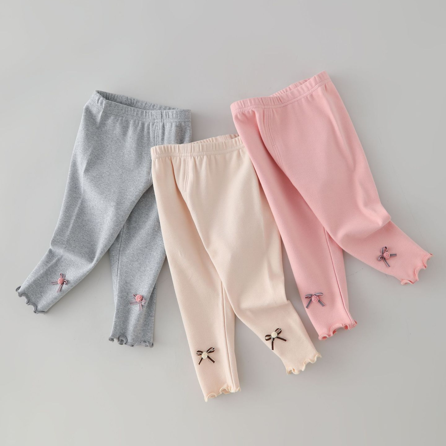 새로운 봄과 가을 어린이 레깅스 귀여운 소녀 바지 어린이 아기의 가을 바지 오픈 크로트 어린이 바지
