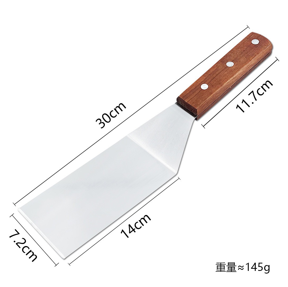 不锈钢木柄煎饼铁板烧牛排煎铲 跨境烹饪工具防烫开刃铲刀料理铲