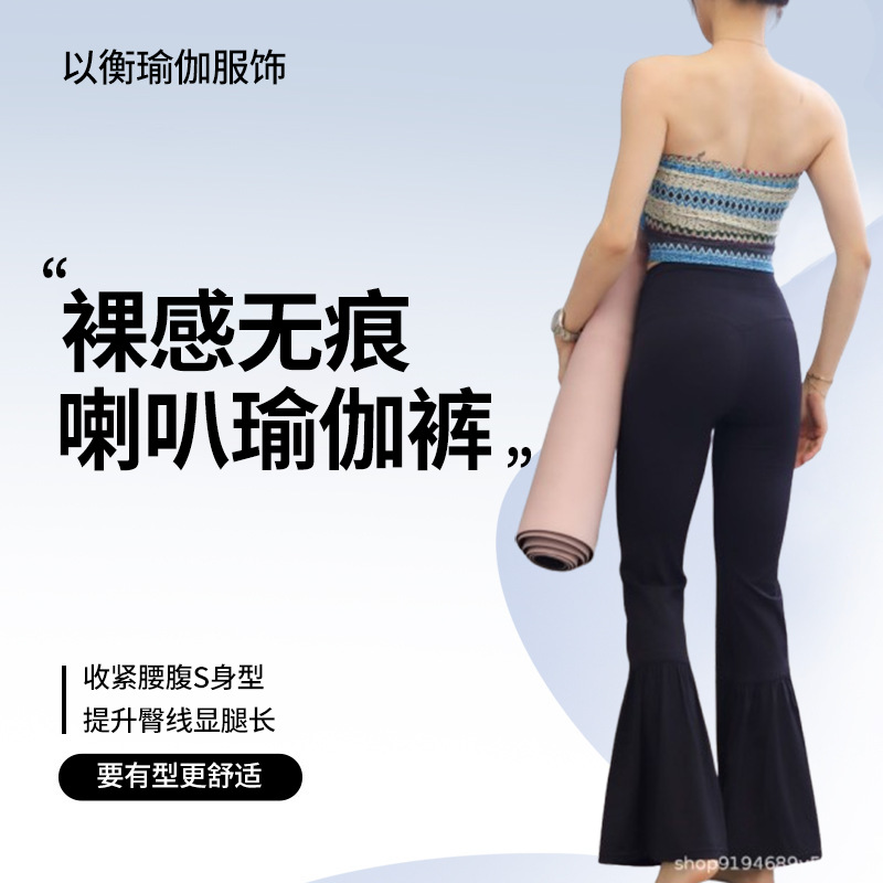 봄여름 누드감 무봉제 노라인 요가팬츠 여성용 하이웨이스트 힙업 와이드 레그 약간의 플레어 스포츠 피트니스 롱 플레어 팬츠스토어 가기