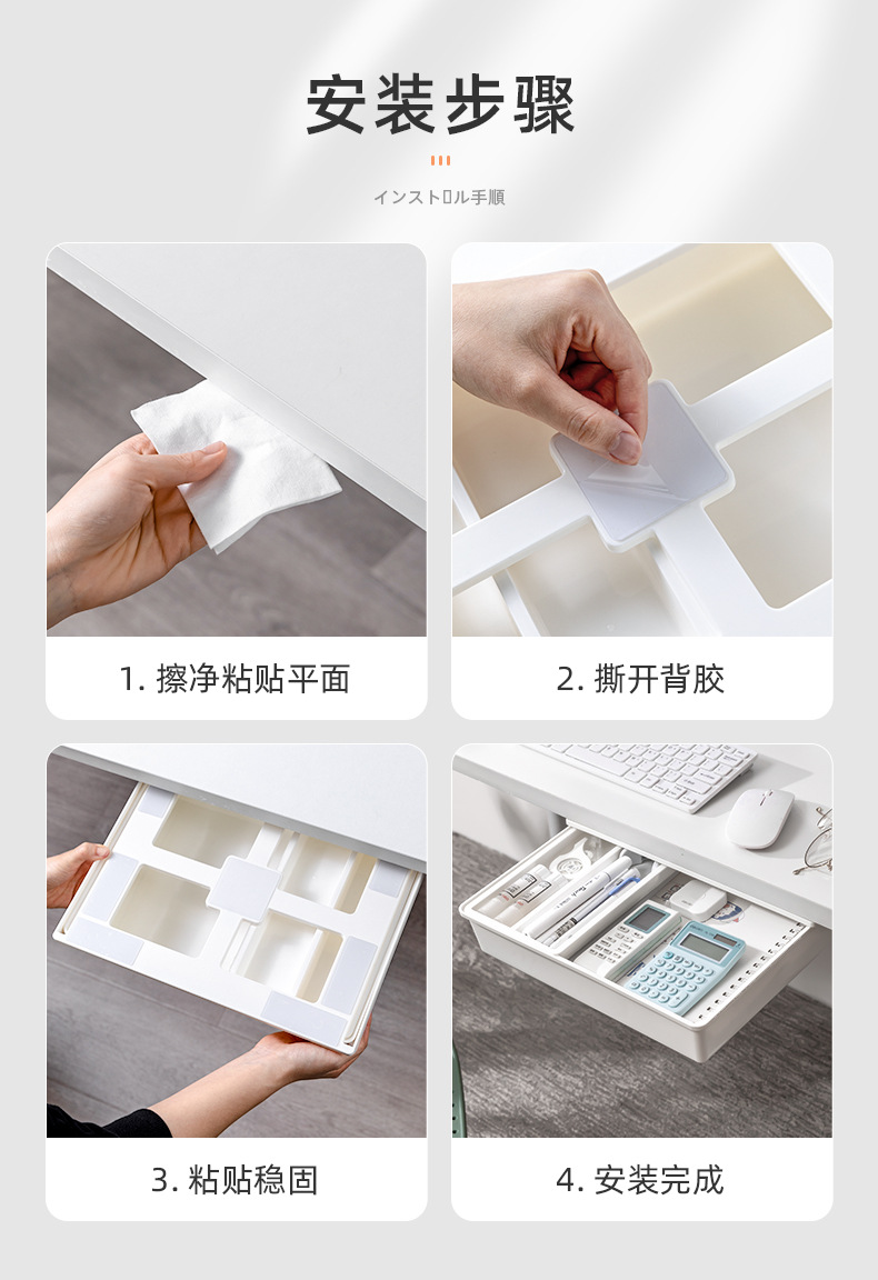 책상 아래 서랍 보관 상자 펀치없는 사무실 책상 바닥 문구 잡화 보관 숨겨진 소형 서랍 보관 상자