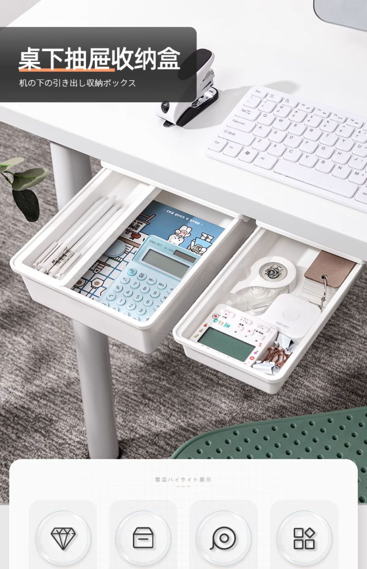 • 칸막이 없는 흰색 초대형 크기[22.5*34*12cm]는 4A 용지를 담을 수 있습니다.