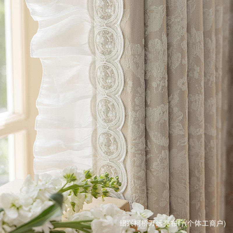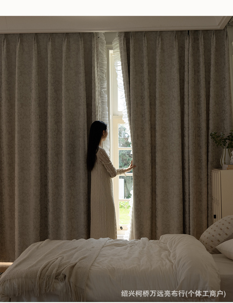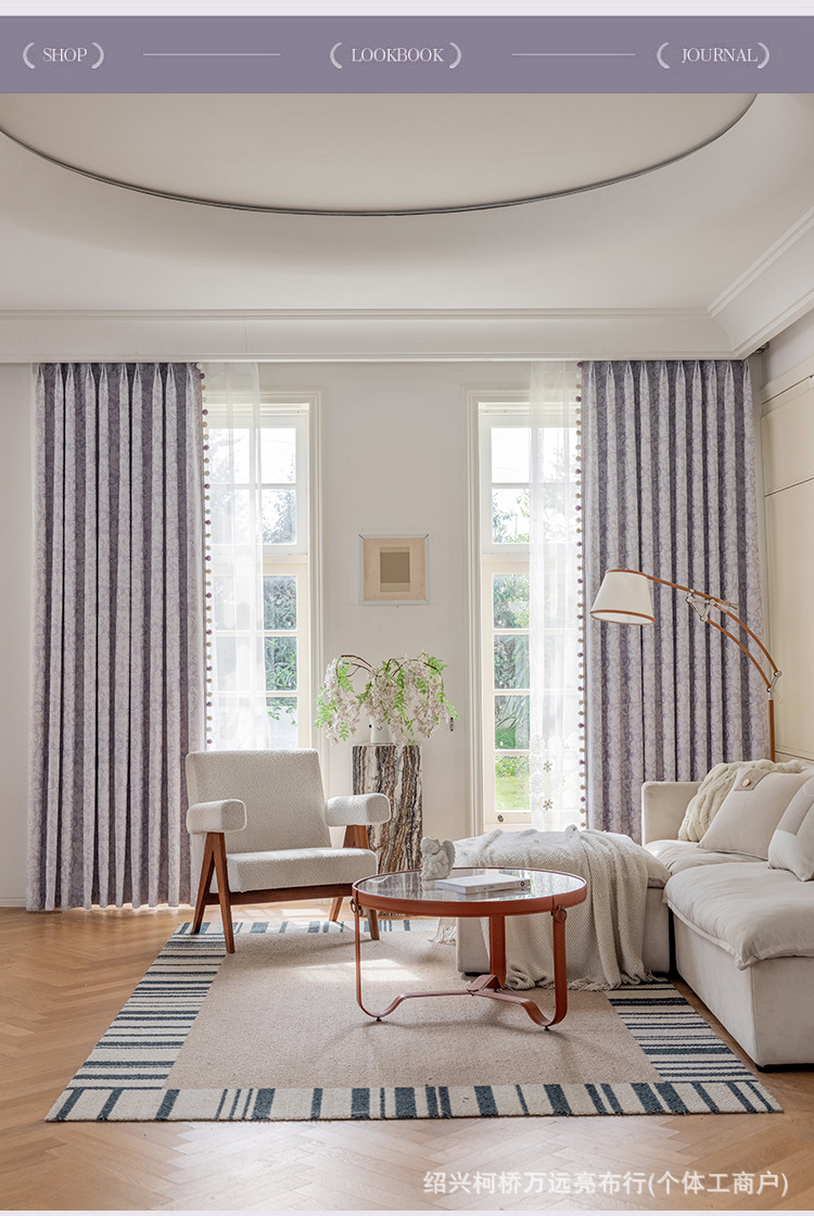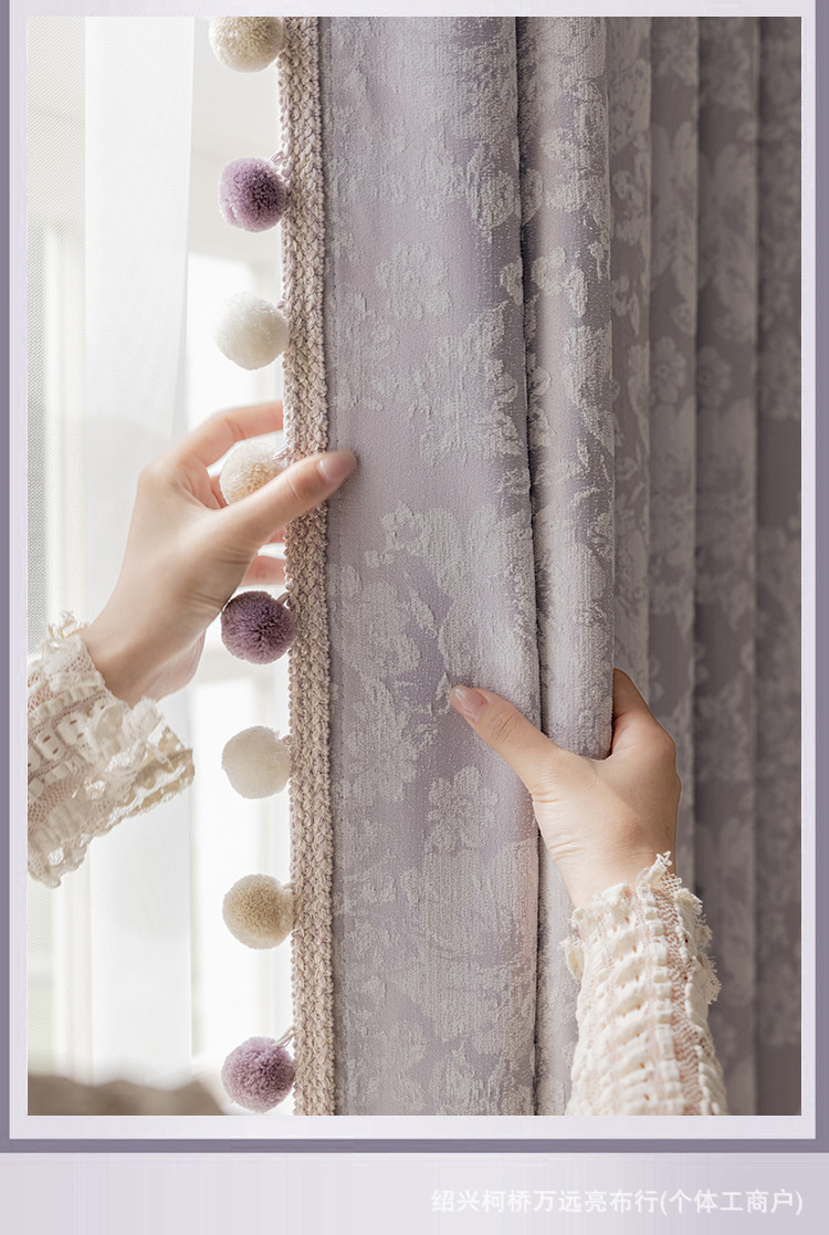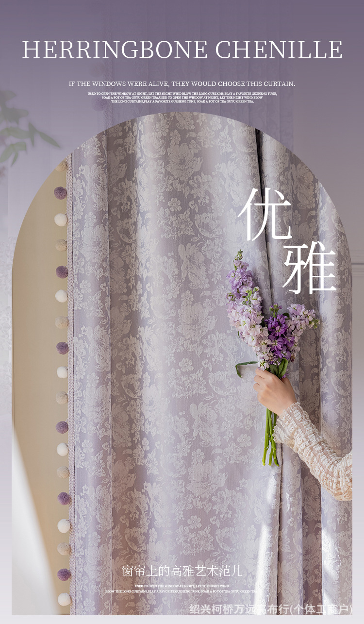 셔닐 거실 커튼 암막 2025 신상 침실 고급스러운 프렌치 스타일 퍼플 커튼 꽃의 바다 꿈스토어 가기