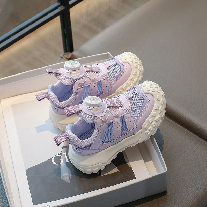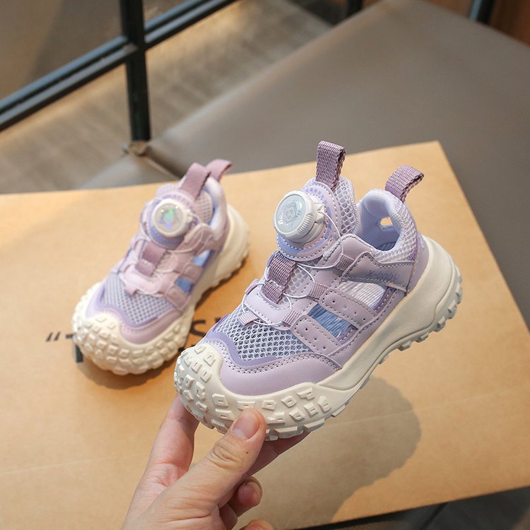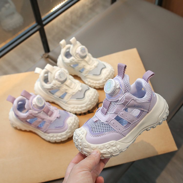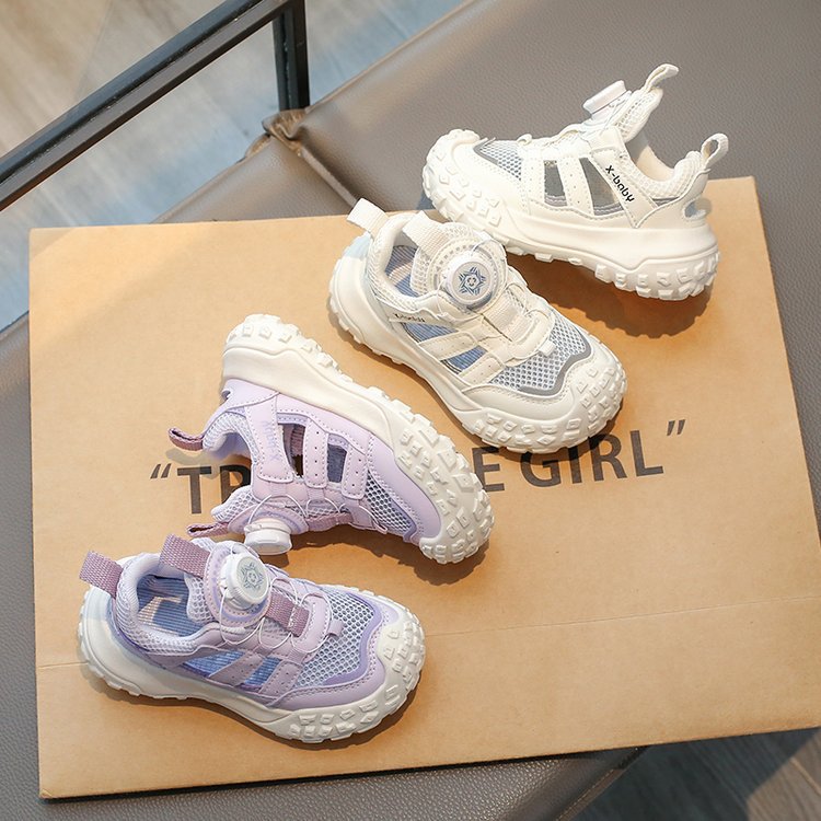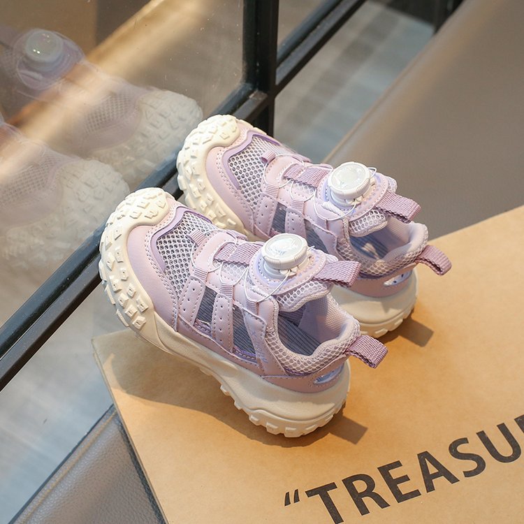 2026 어린이용 속이 빈 싱글 메쉬 신발, 부드러운 밑창, 회전식 버클, 남아 여아 통기성 런닝화, 유아용 트렌디 미끄럼 방지 여름 경량화
