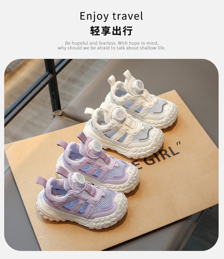2026 어린이용 속이 빈 싱글 메쉬 신발, 부드러운 밑창, 회전식 버클, 남아 여아 통기성 런닝화, 유아용 트렌디 미끄럼 방지 여름 경량화스토어 가기