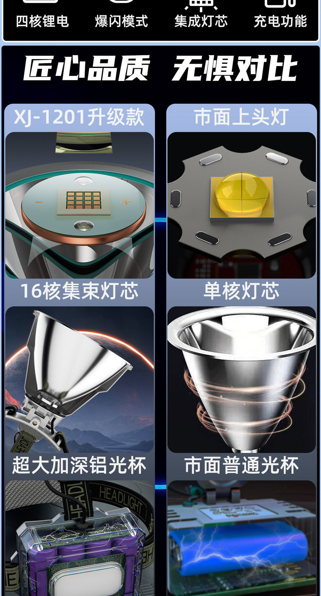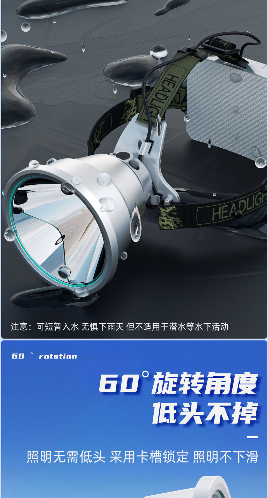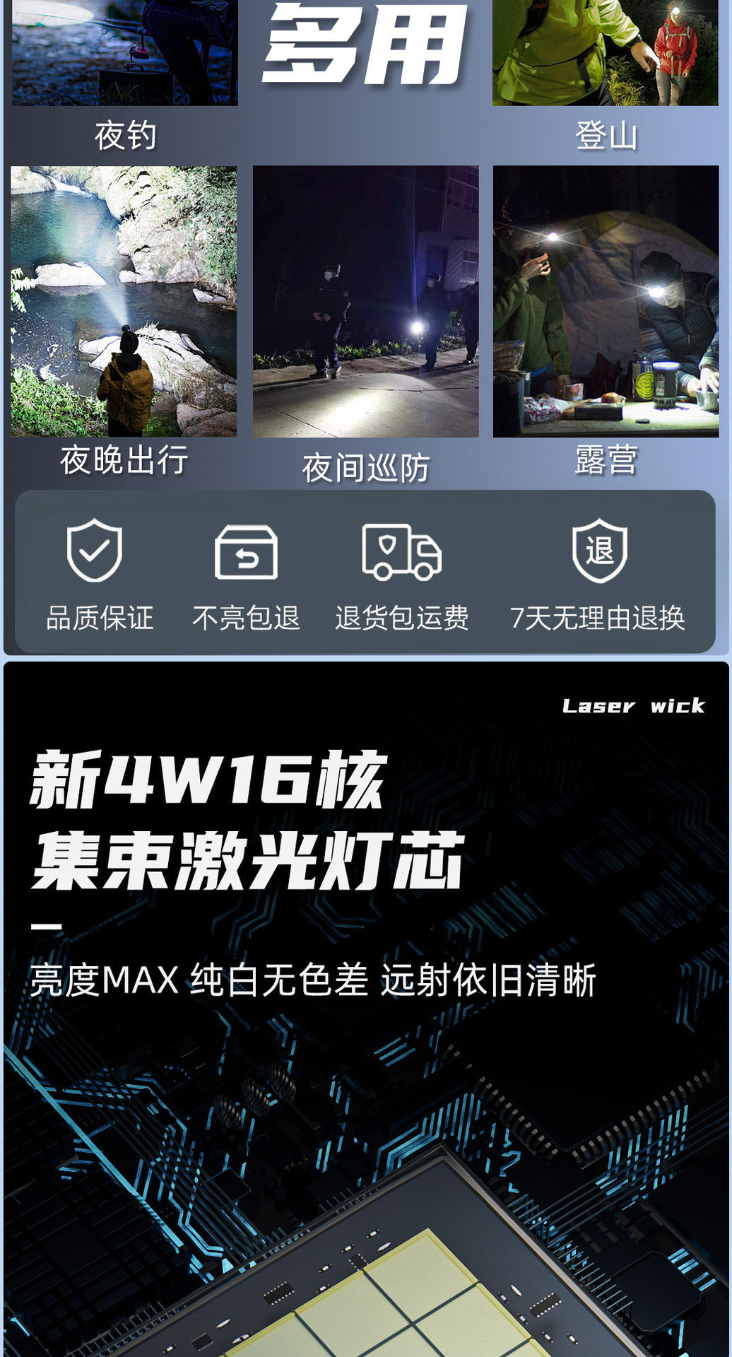 헤드 램프 강한 빛 6000W 고출력 16 핵 레이저 낚시 램프 슈퍼 밝은 충전식 방수 유도 장거리 광부의 램프