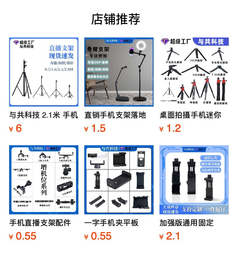 手机夹 万向云台 直播支架 直播补光灯 补光灯 磁吸支架 磁吸手机夹 三脚架 直播脚架