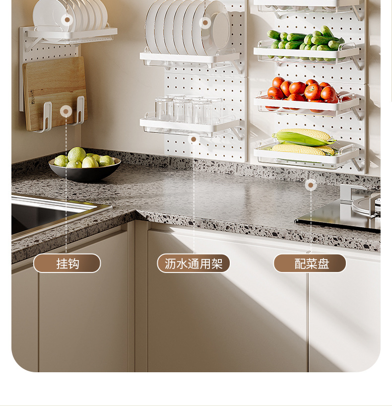 주방 홀보드 수납 바구니 선반, 양파, 생강, 마늘 재료 준비 트레이, 수납함, 벽걸이 수납장, 벽걸이형스토어 가기