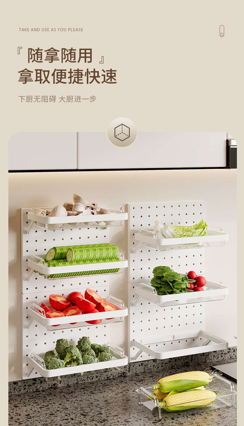 주방 홀보드 수납 바구니 선반, 양파, 생강, 마늘 재료 준비 트레이, 수납함, 벽걸이 수납장, 벽걸이형