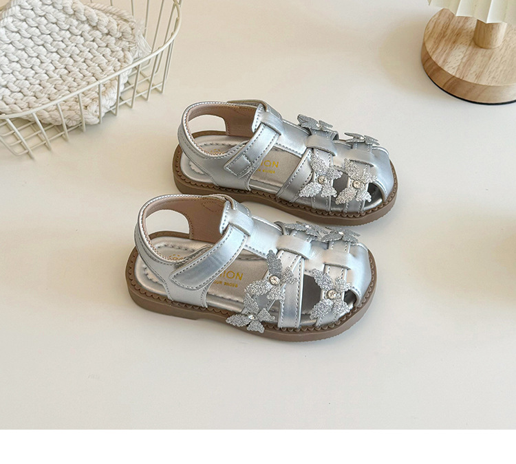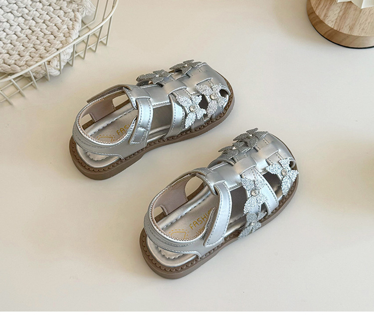 어린이 신발 어린이 공주 샌들 2024 새로운 여름 아기 소녀의 부드러운 단독 서양식 비치 신발