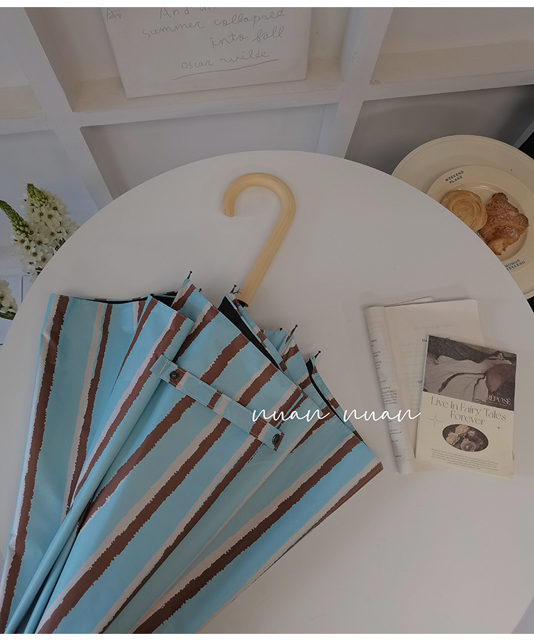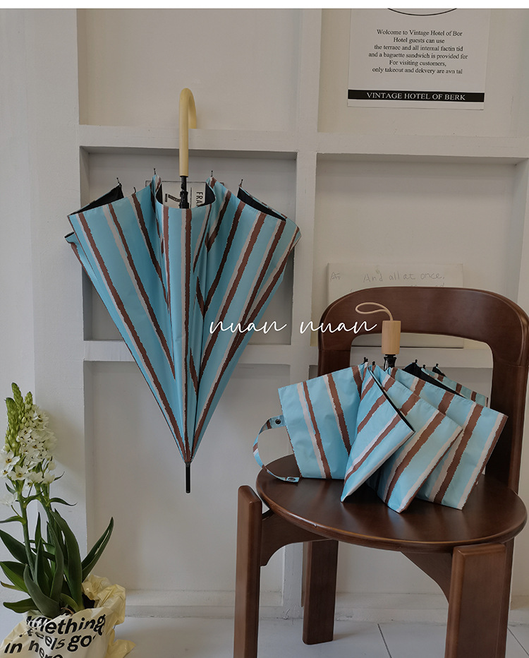 긴 손잡이 우산 빈티지 줄무늬 우산 여성용 맑고 비오는 이중 사용 소형 휴대용 자동 선 스크린 UV 태양 태양 우산스토어 가기