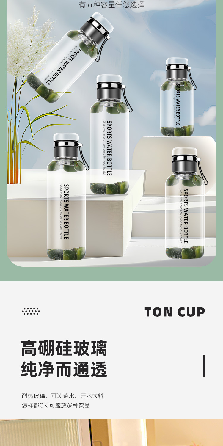 여름 소년 높은 색 가치 차 물 분리 여름 대용량 톤 톤 컵 높은 붕규산 일반 유리 동반 컵스토어 가기