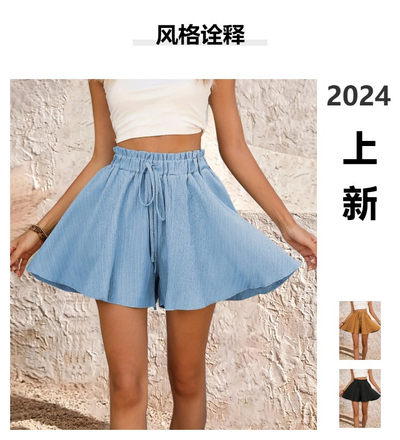 2024 봄과 여름 아마존 AliExpress 여성 여름 단색 반바지 바지 치마 우아한 허리 느슨한 넓은 다리 반바지