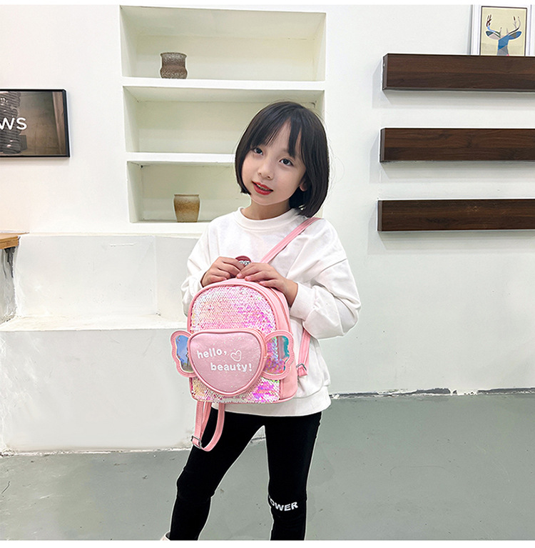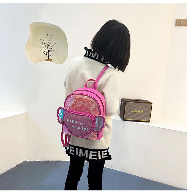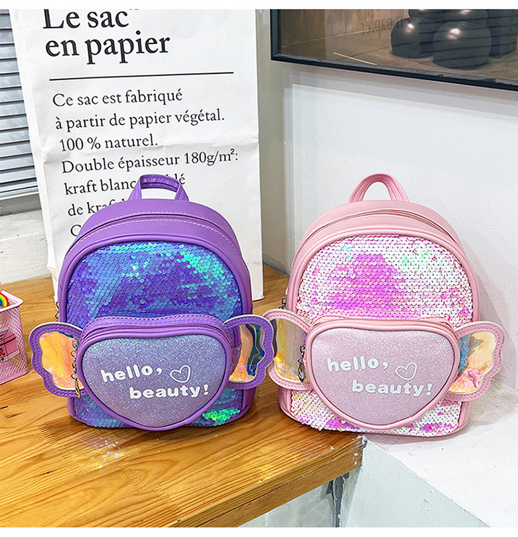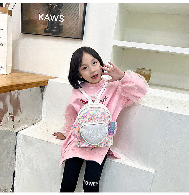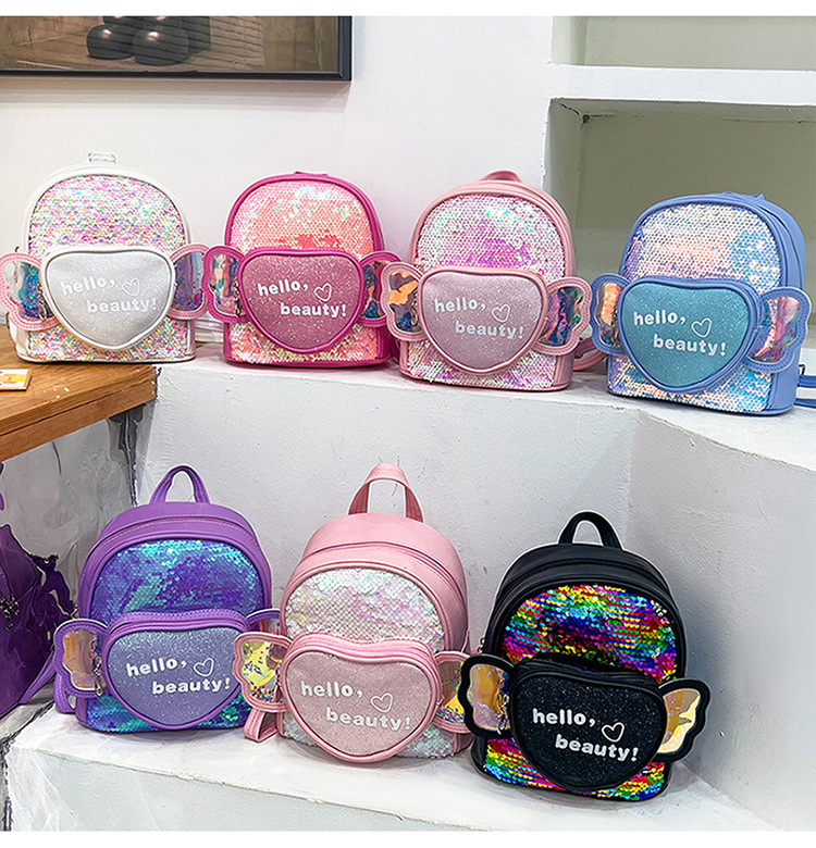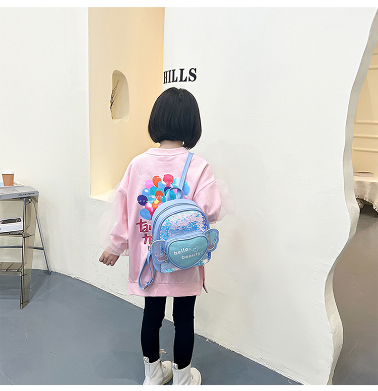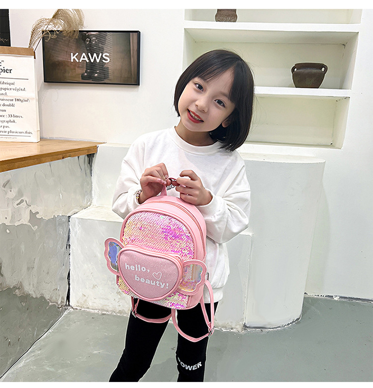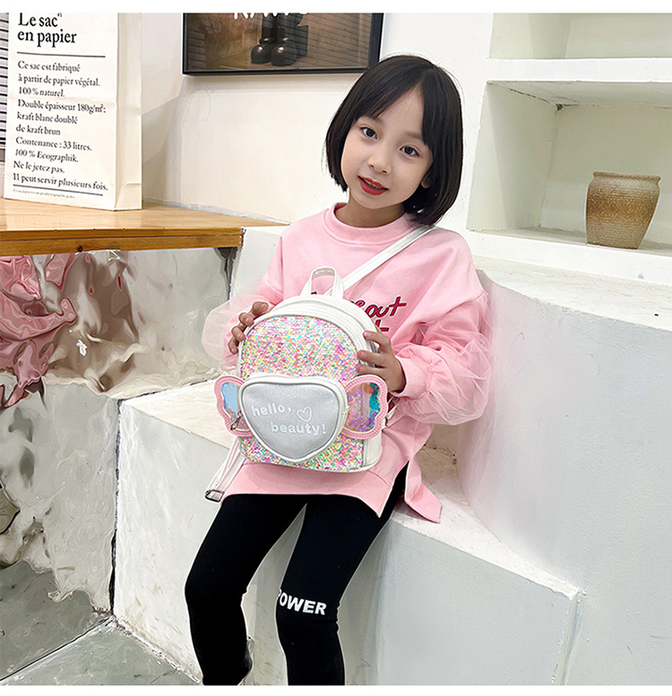 유치원 가방 2024 새로운 공주 Sequin 작은 배낭 귀여운 작은 날개 소녀 배낭 아기 가방