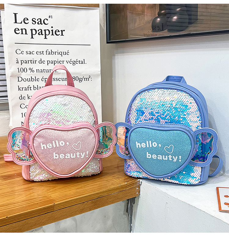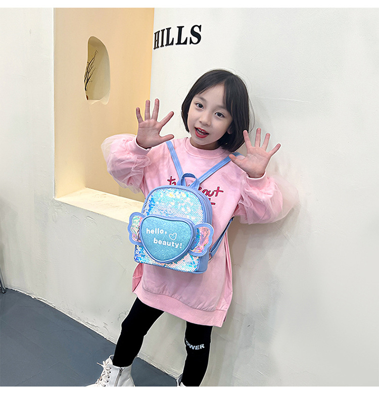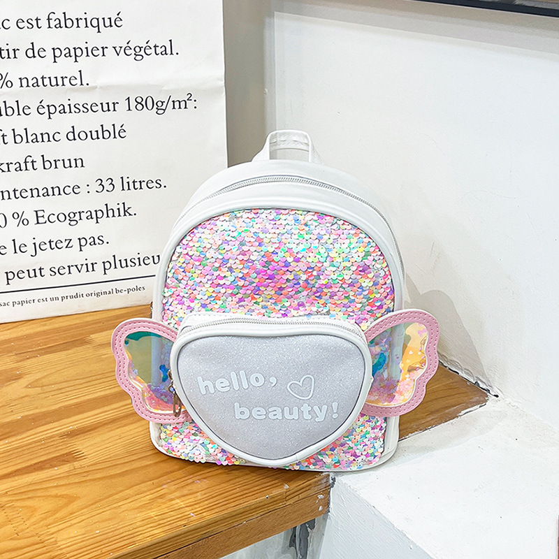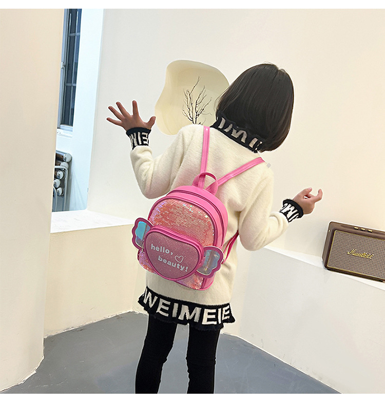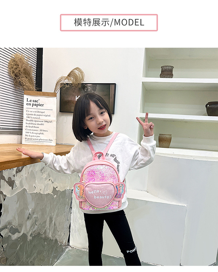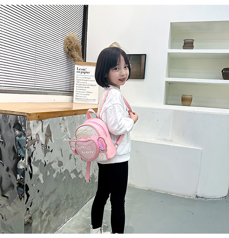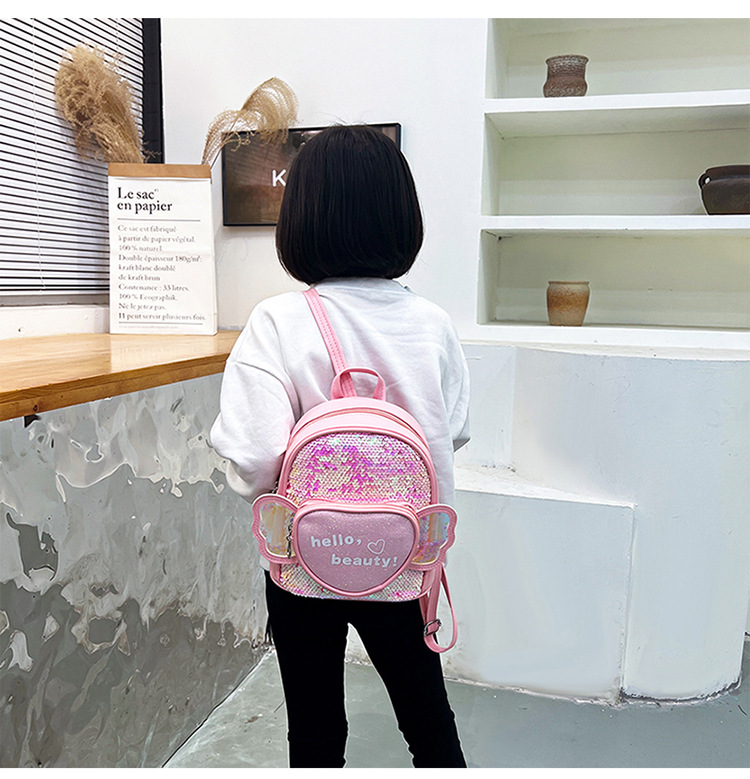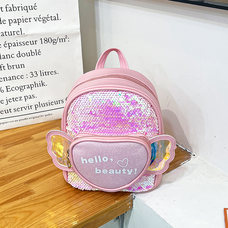 유치원 가방 2024 새로운 공주 Sequin 작은 배낭 귀여운 작은 날개 소녀 배낭 아기 가방