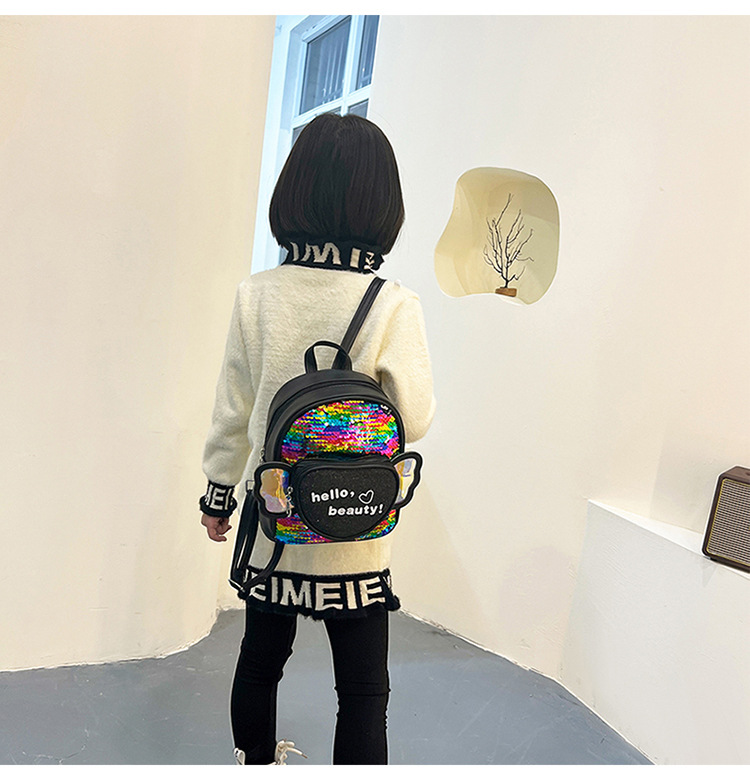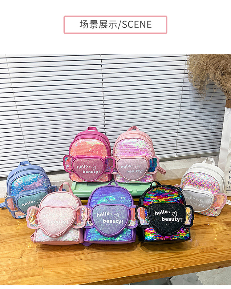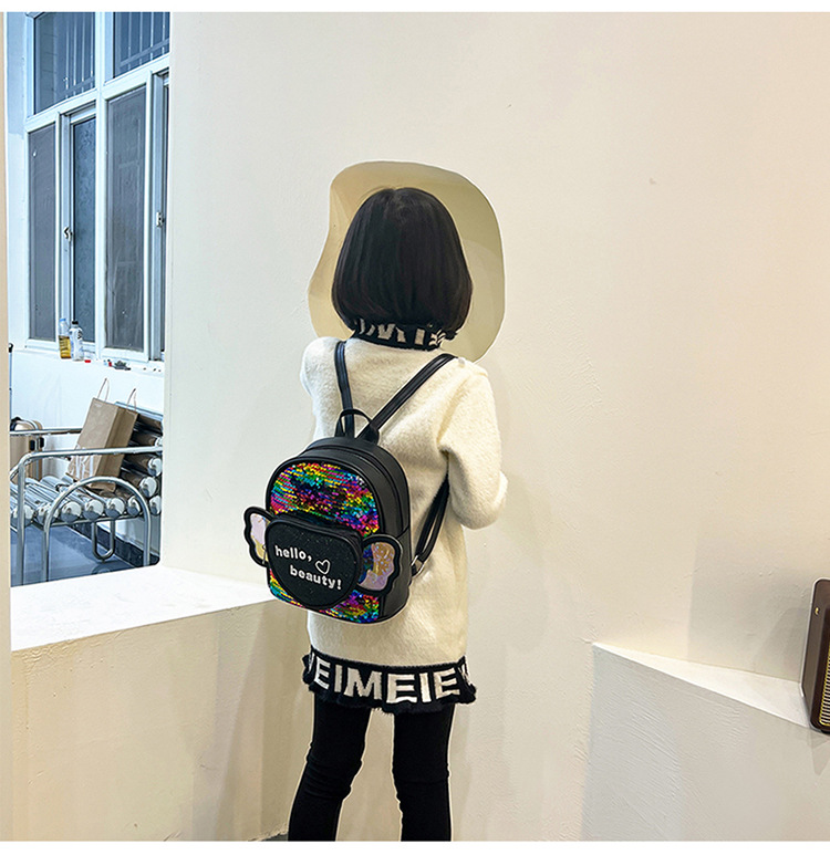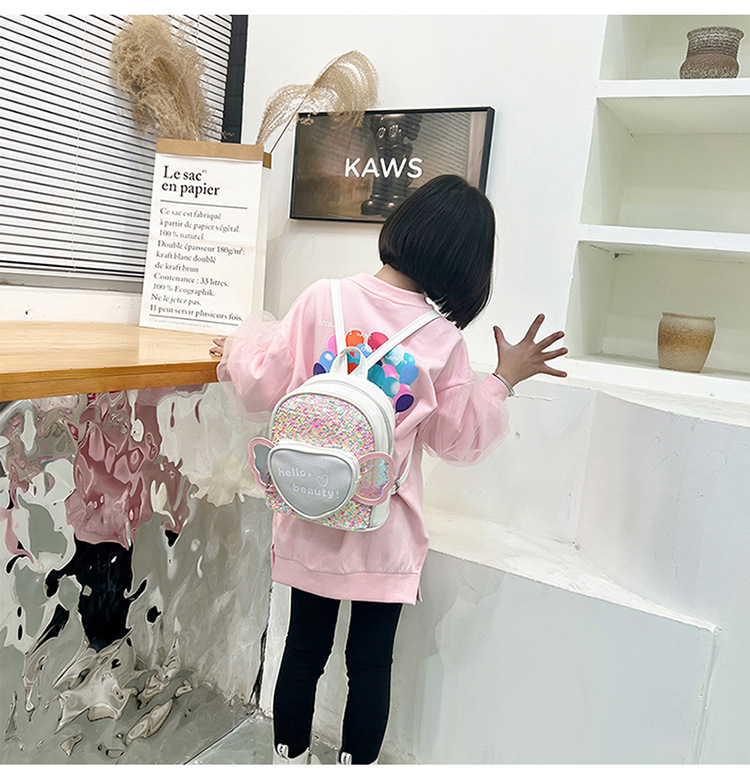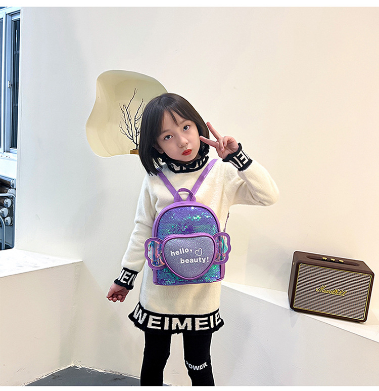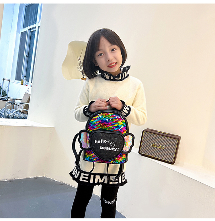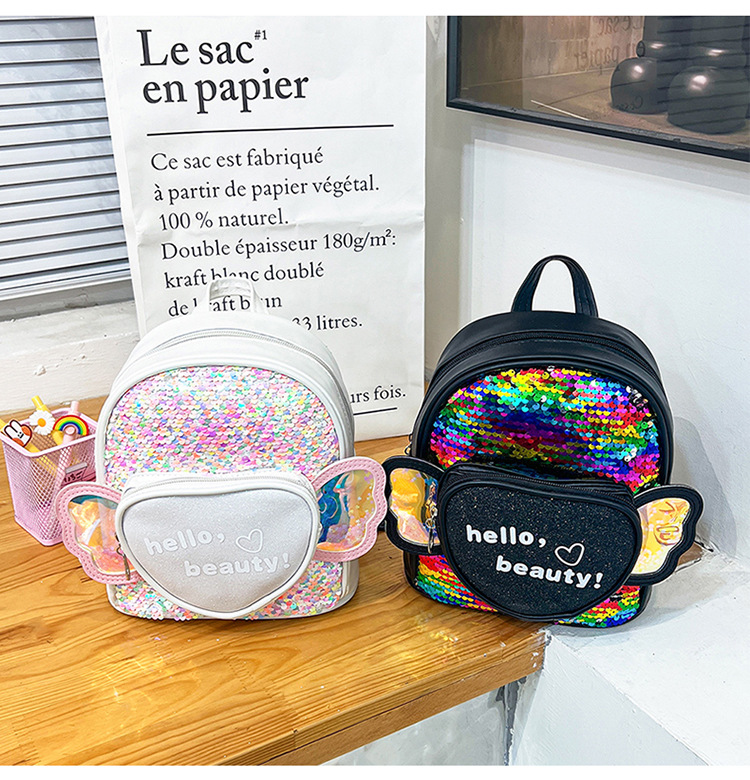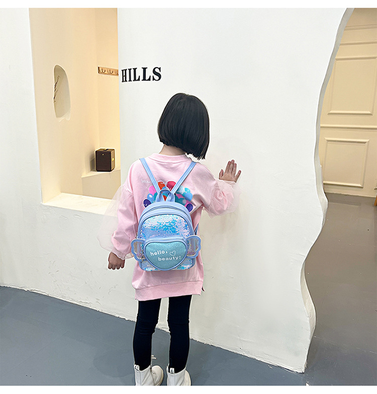 유치원 가방 2024 새로운 공주 Sequin 작은 배낭 귀여운 작은 날개 소녀 배낭 아기 가방