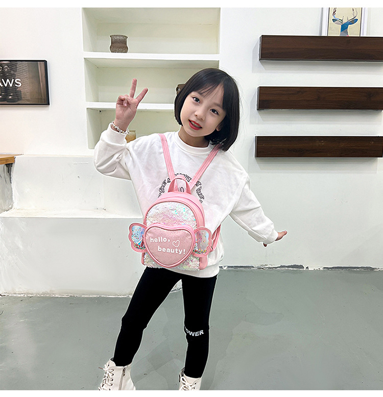 유치원 가방 2024 새로운 공주 Sequin 작은 배낭 귀여운 작은 날개 소녀 배낭 아기 가방스토어 가기