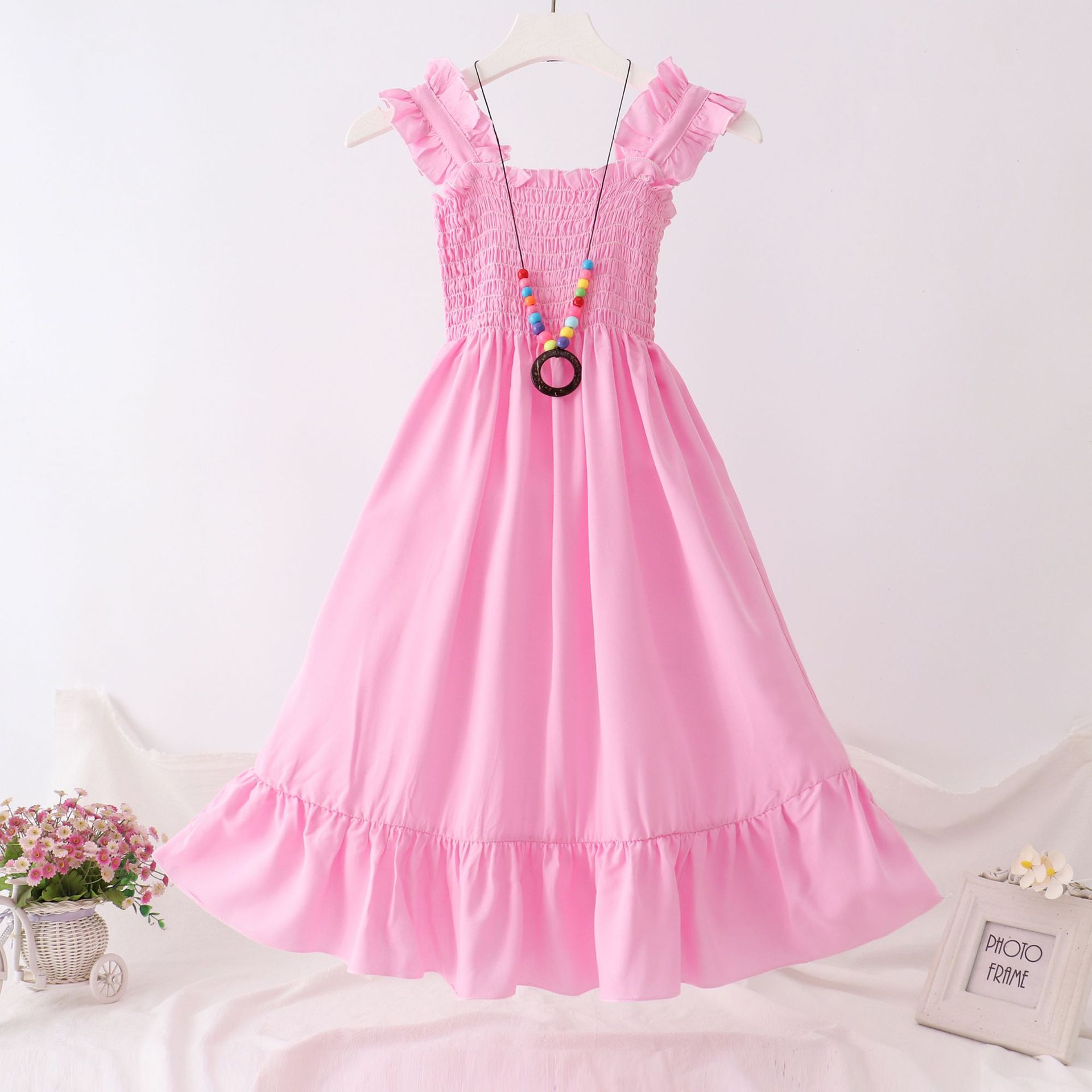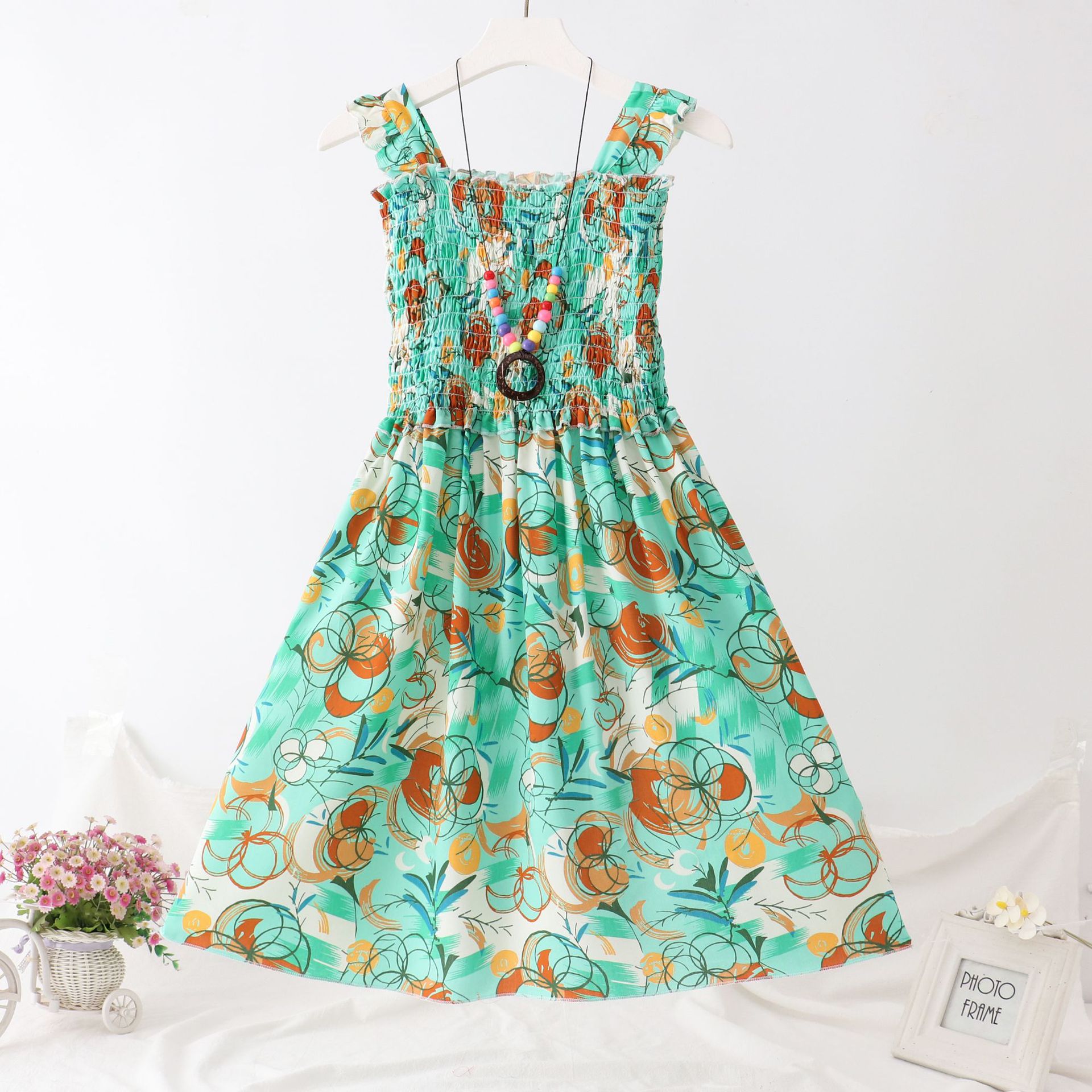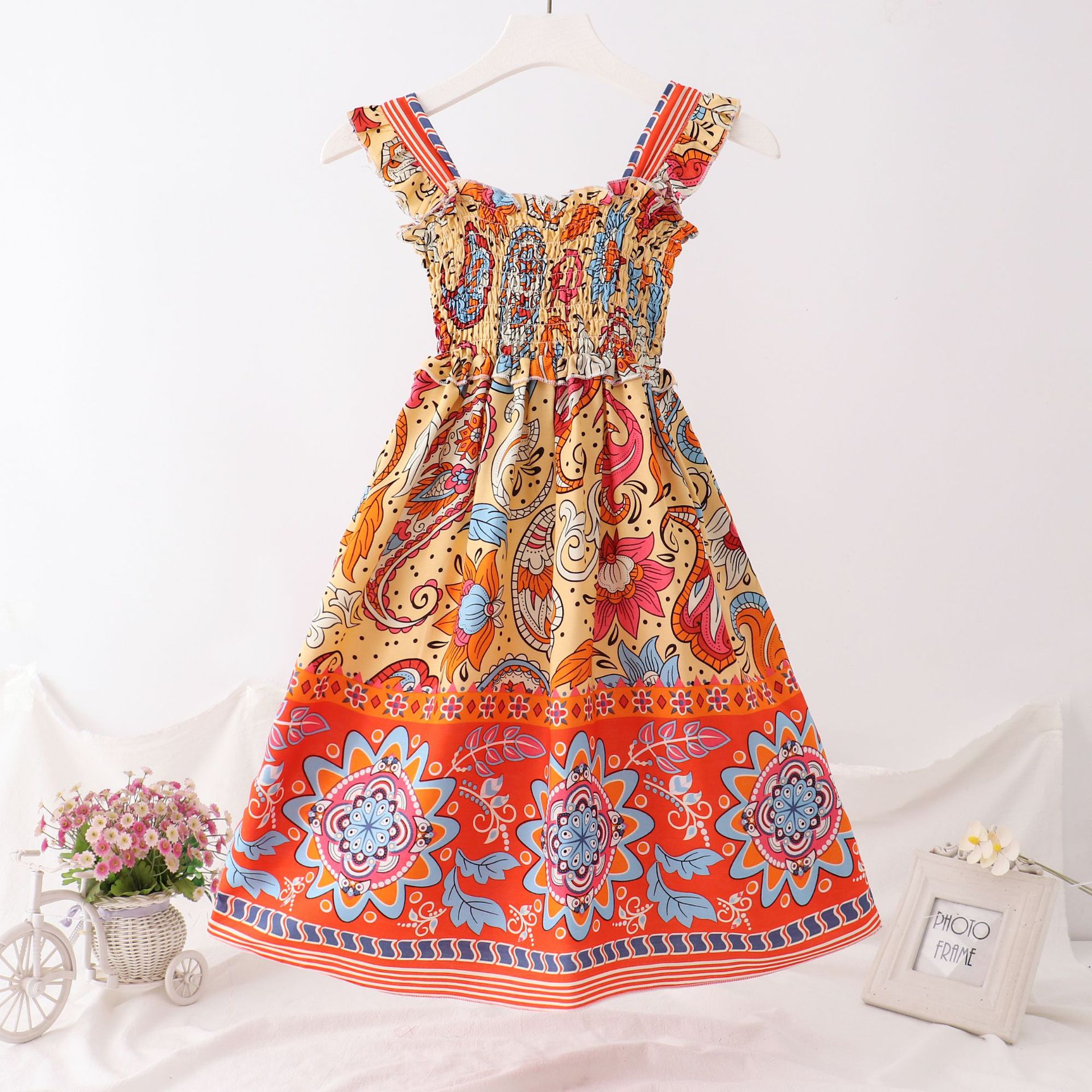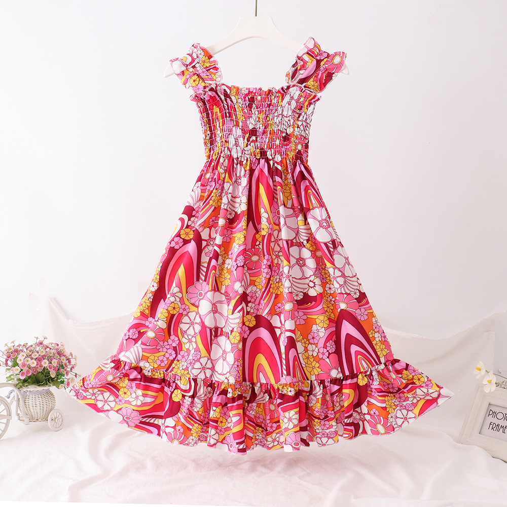 24 새로운 보헤미안 슬립 스커트 대형 어린이 레이스 원피스 소녀 해변 휴가 면 실크 조끼 긴 치마스토어 가기