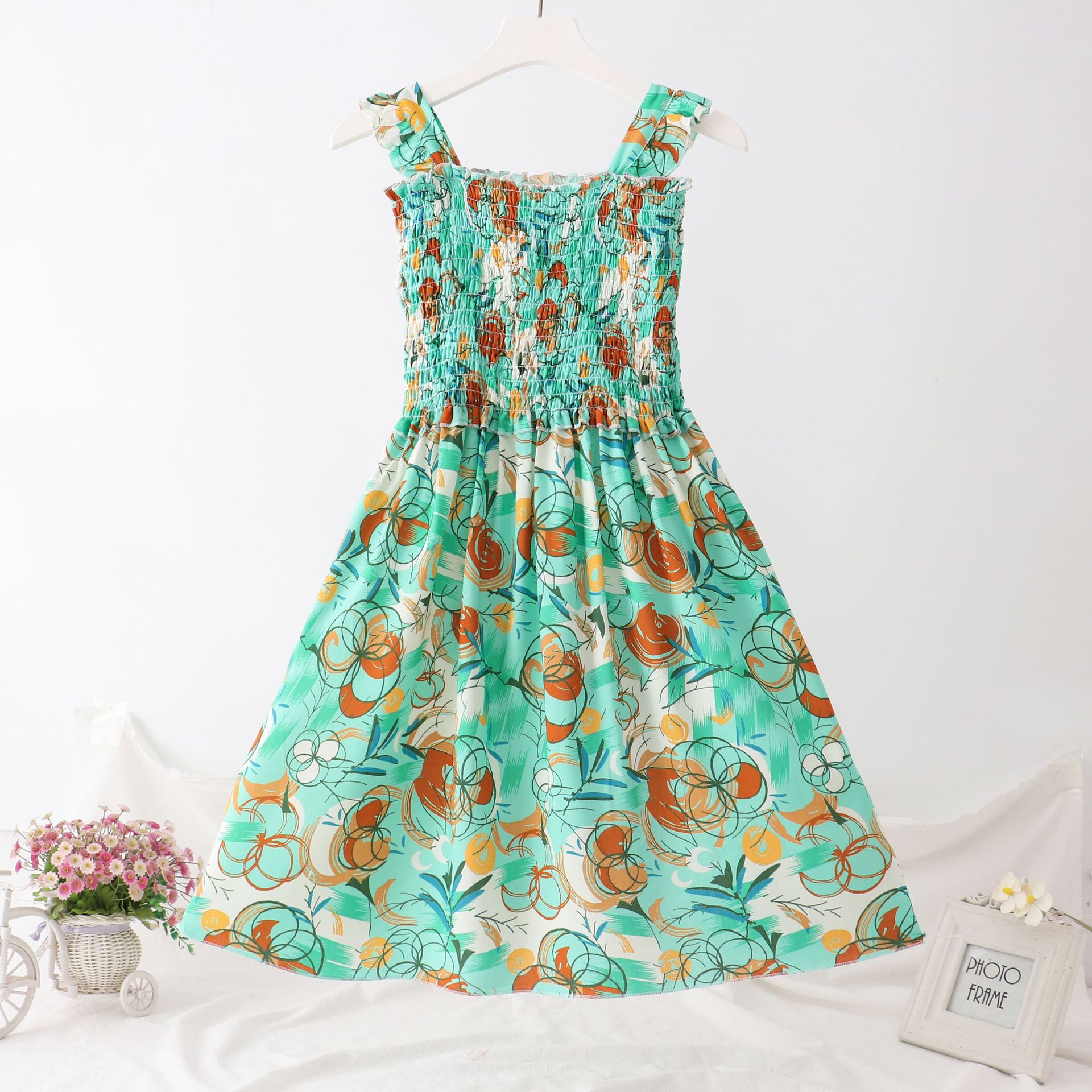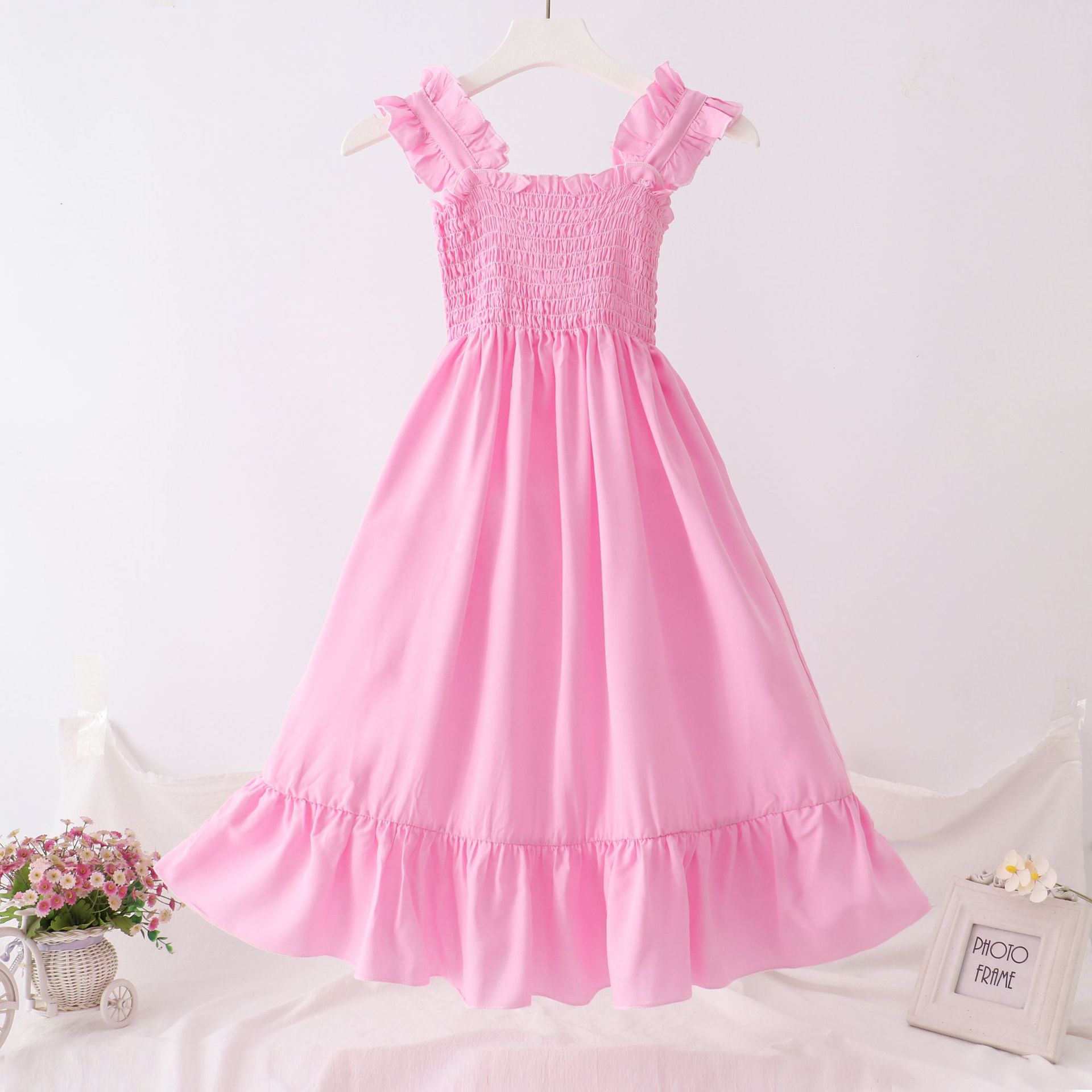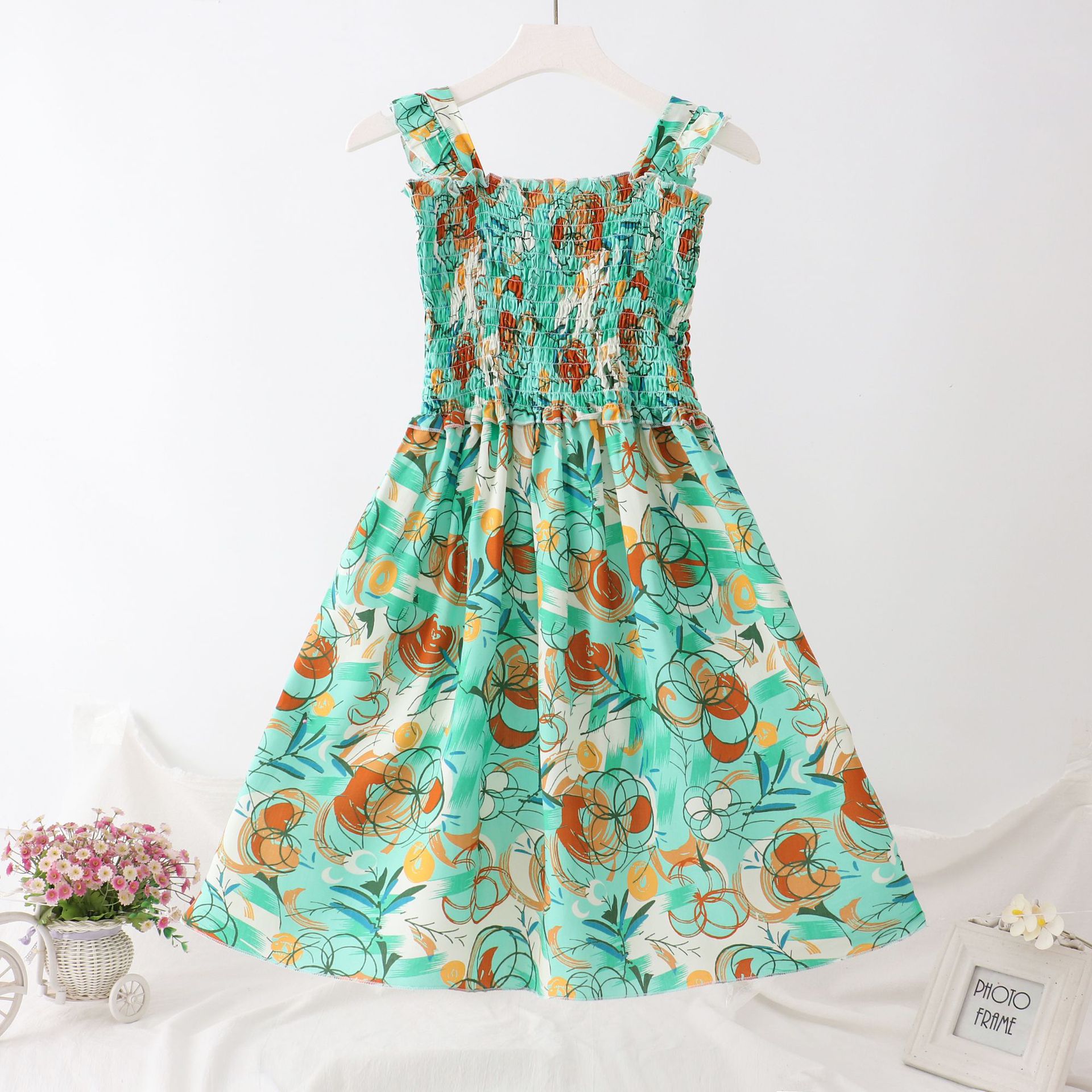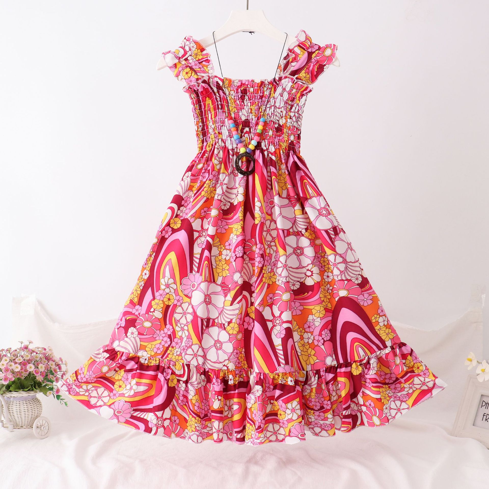 24 새로운 보헤미안 슬립 스커트 대형 어린이 레이스 원피스 소녀 해변 휴가 면 실크 조끼 긴 치마스토어 가기