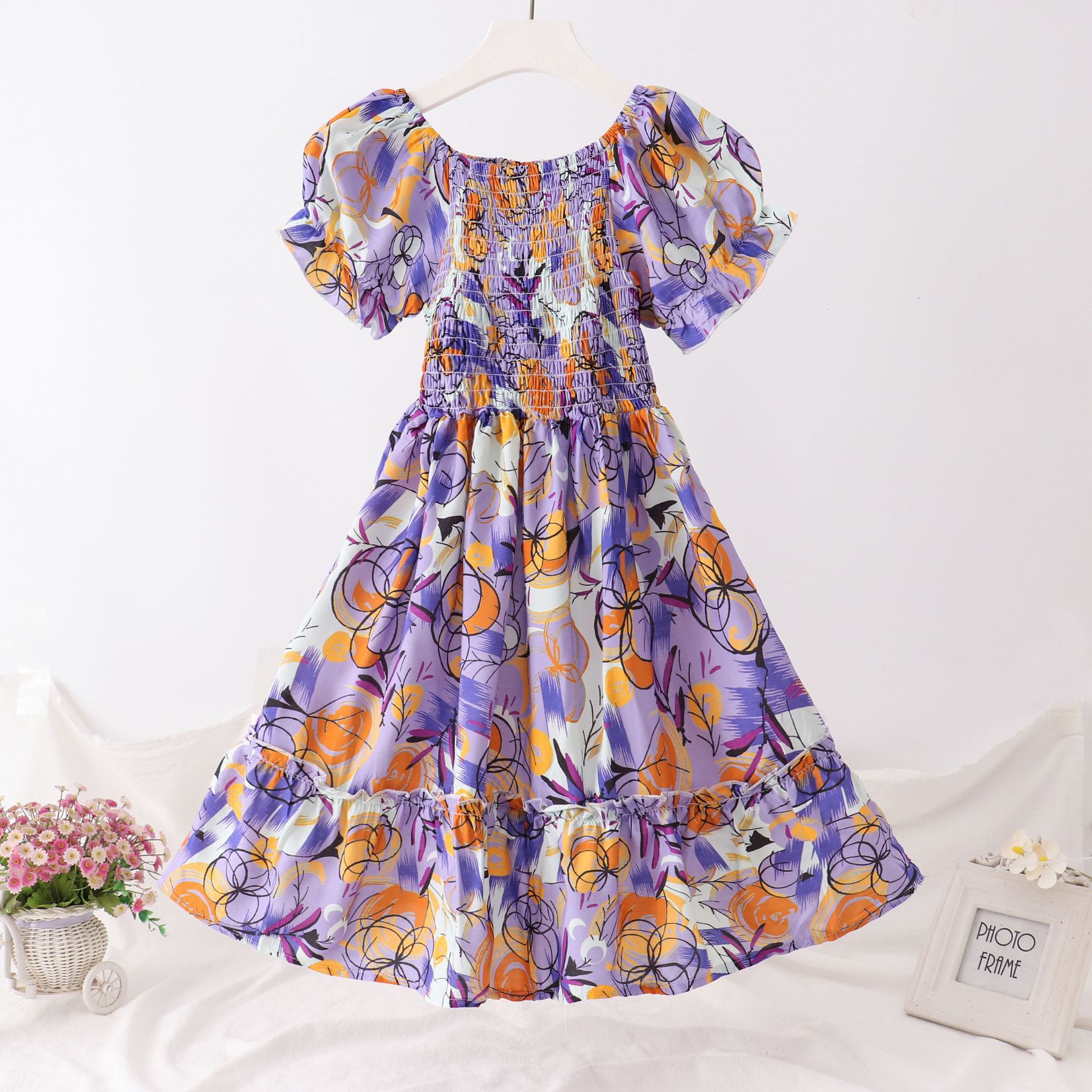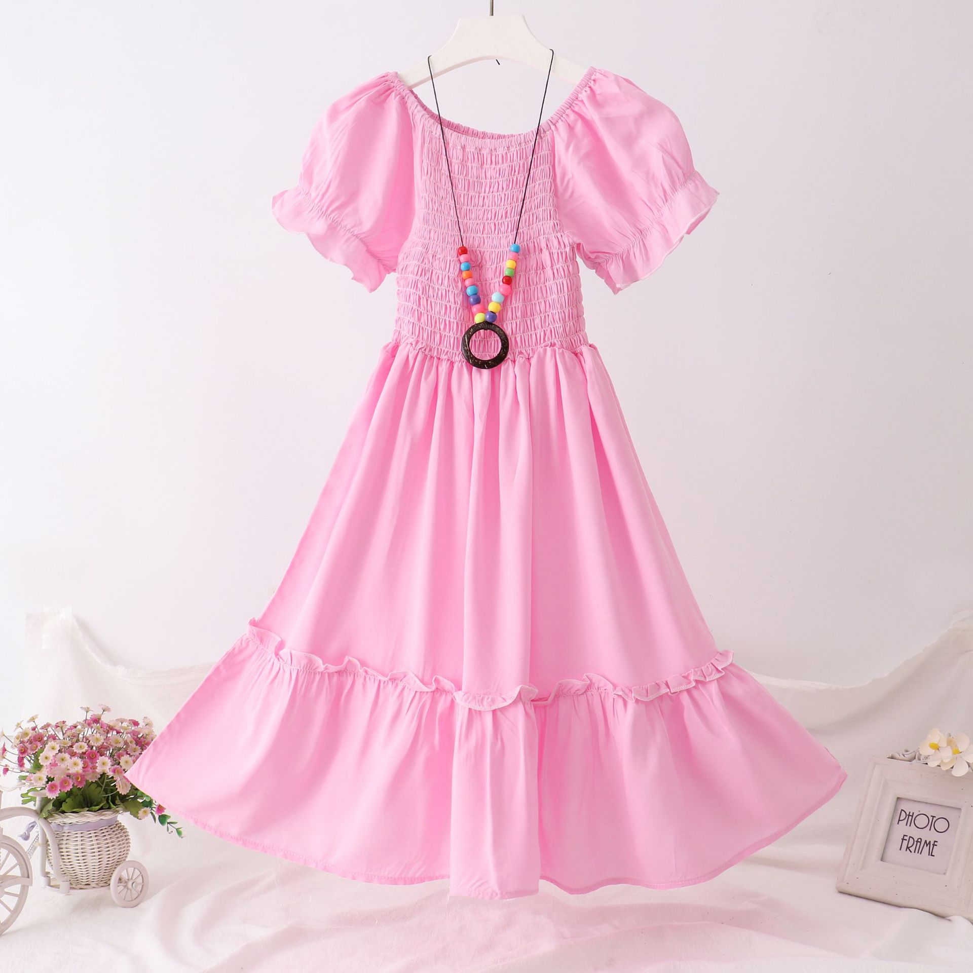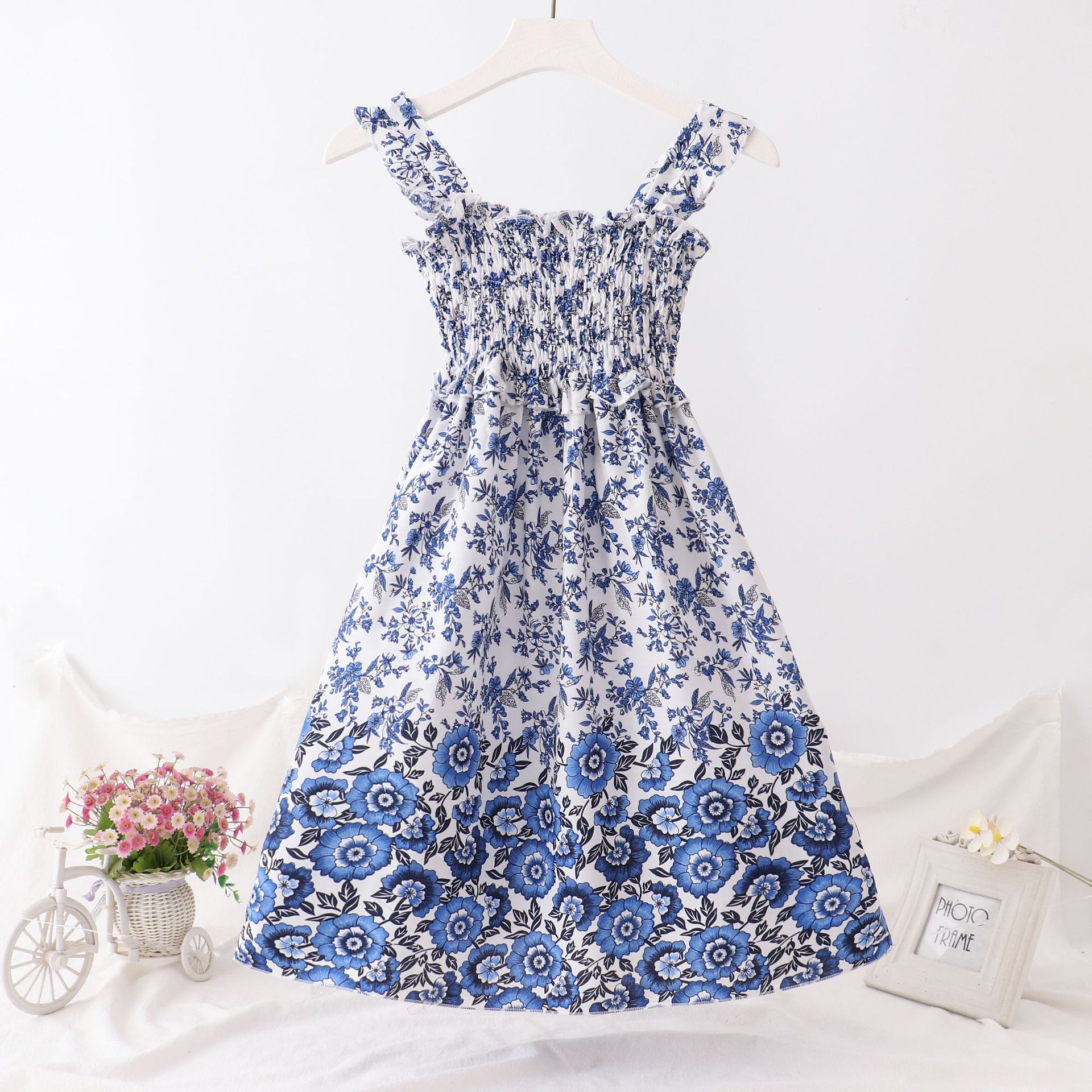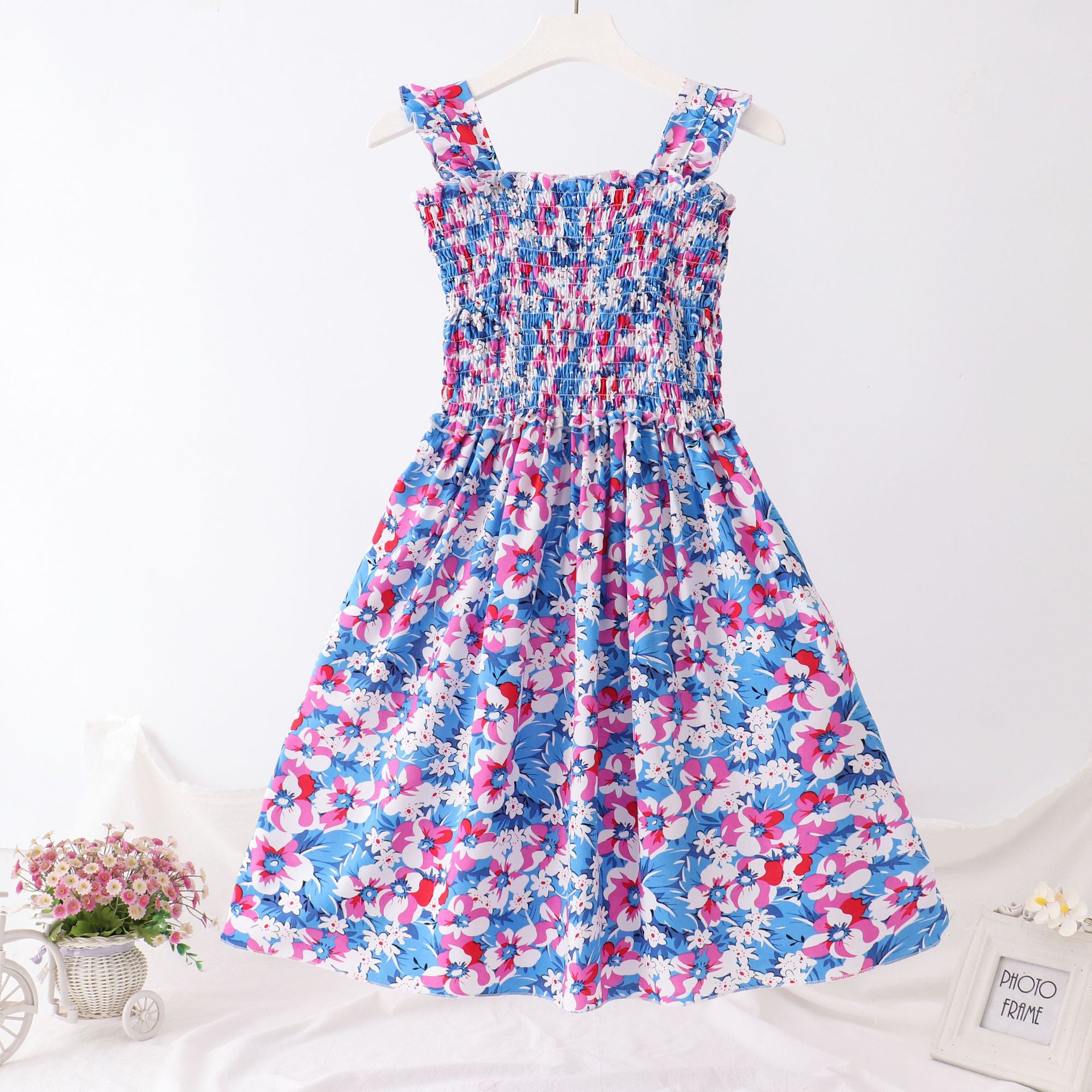 24 새로운 보헤미안 슬립 스커트 대형 어린이 레이스 원피스 소녀 해변 휴가 면 실크 조끼 긴 치마스토어 가기